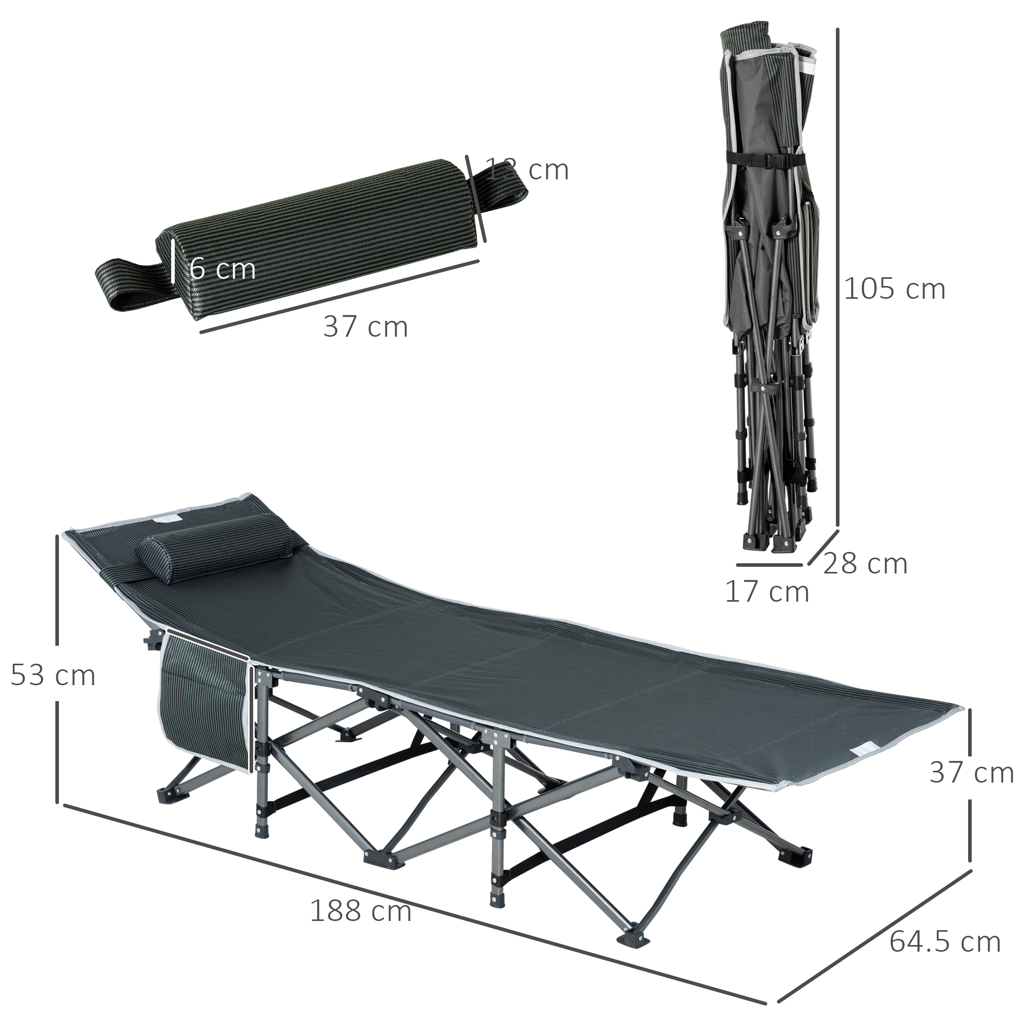 Datorita patului de camping pliabil si portabil [BRAND NAME] pentru adulti, veti avea intotdeauna un loc confortabil de odihna in timpul excursiilor. Patul are un buzunar lateral practic pentru a tine obiectele mai mici la indemana. Cadrul din otel si materialul Oxford durabil pot suporta confortabil pana la 150 kg de greutate. O geanta de transport este, de asemenea, inclusa in pachet, facandu-l cel mai bun partener posibil pentru excursia dvs in camping!