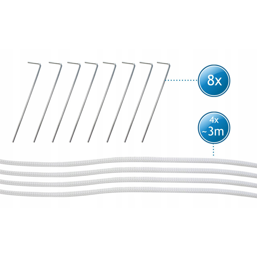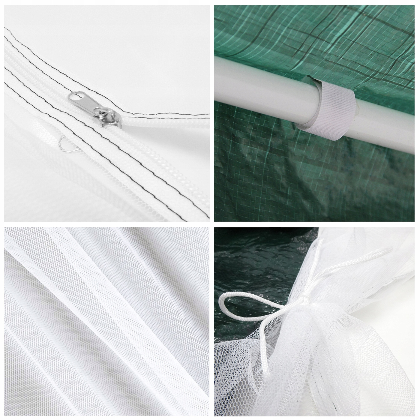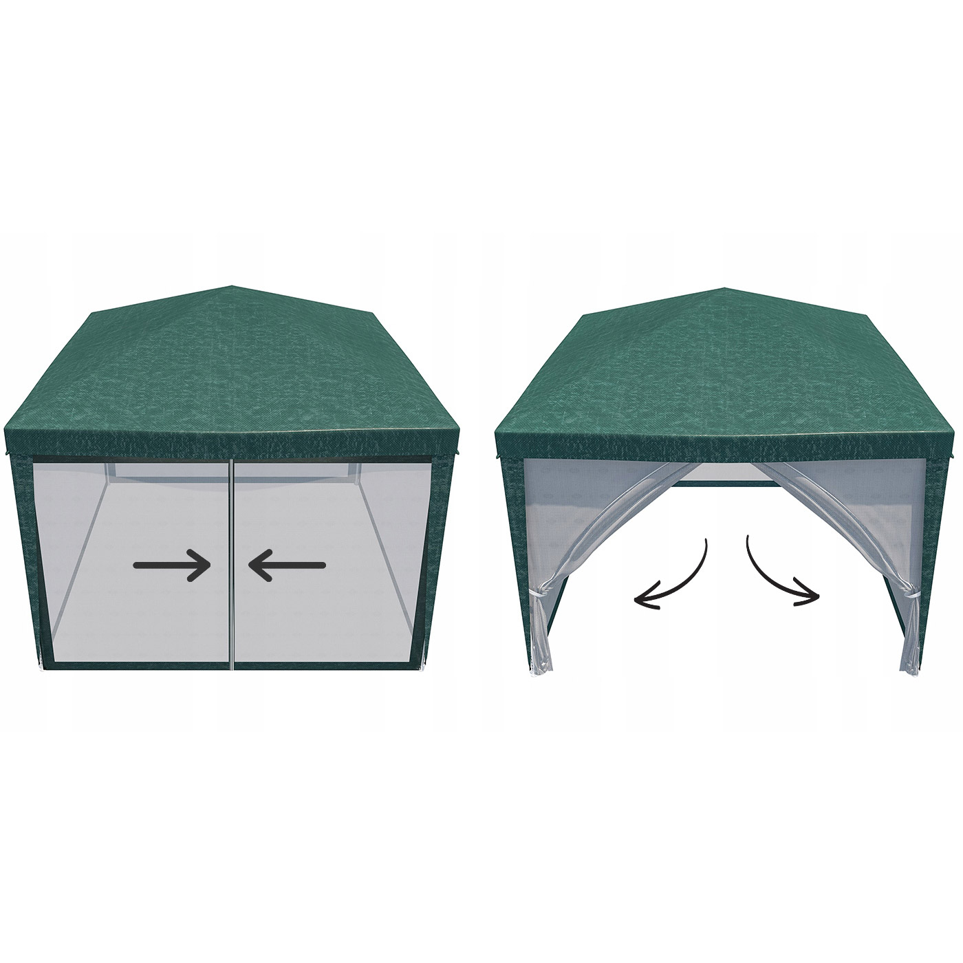 Pavilion de gradina din polietilena rezistenta. Simplu de asamblat. Elementele de constructie cu rezistenta adecvata (diametrul tevilor - 2,4 cm, 1,8 cm) determina stabilitatea pavilionului. Structura este realizata din otel acoperit cu pulbere alba. Potrivit pentru evenimente in aer liber. Protejeaza impotriva soarelui, iar in combinatie cu o plasa de tantari - impotriva insectelor.