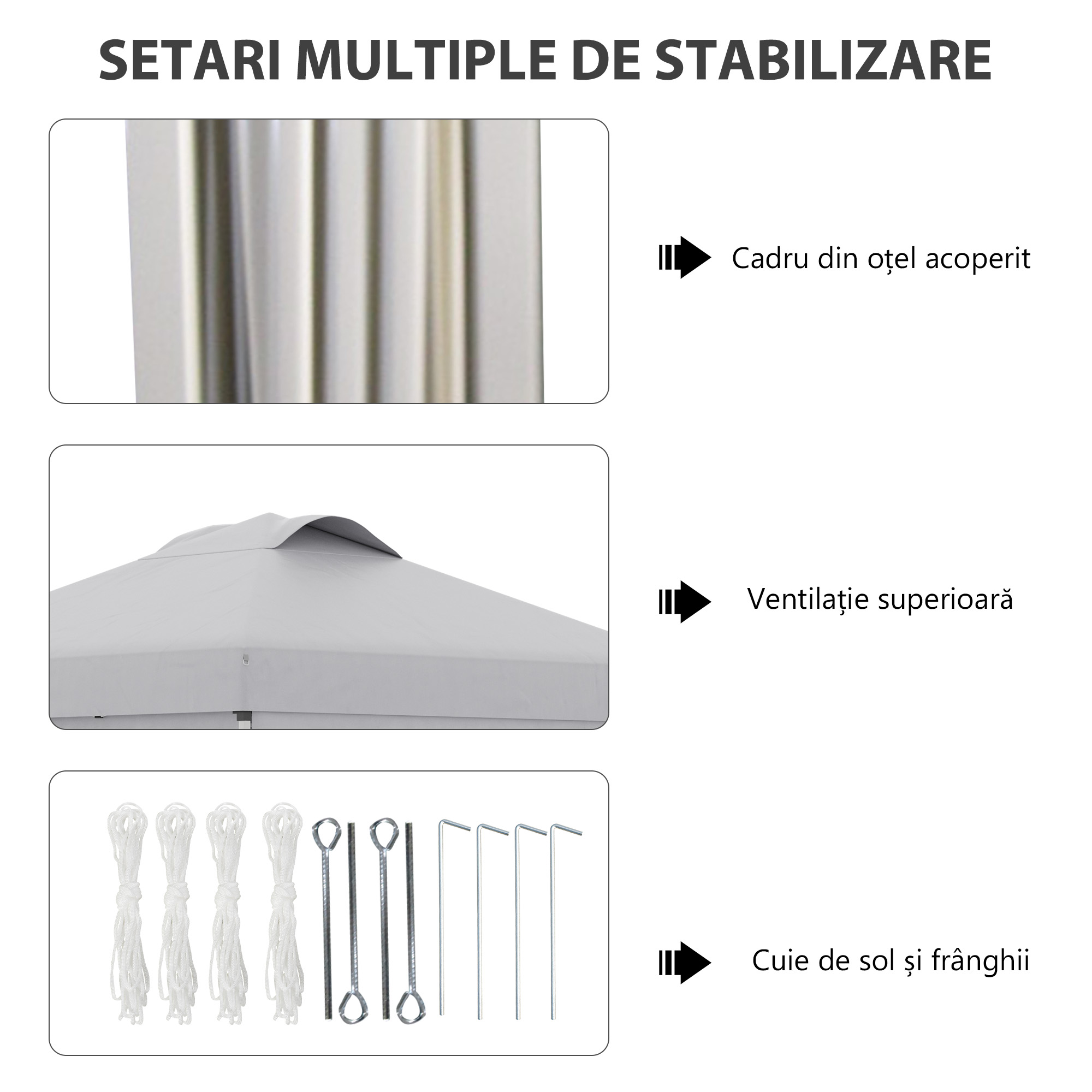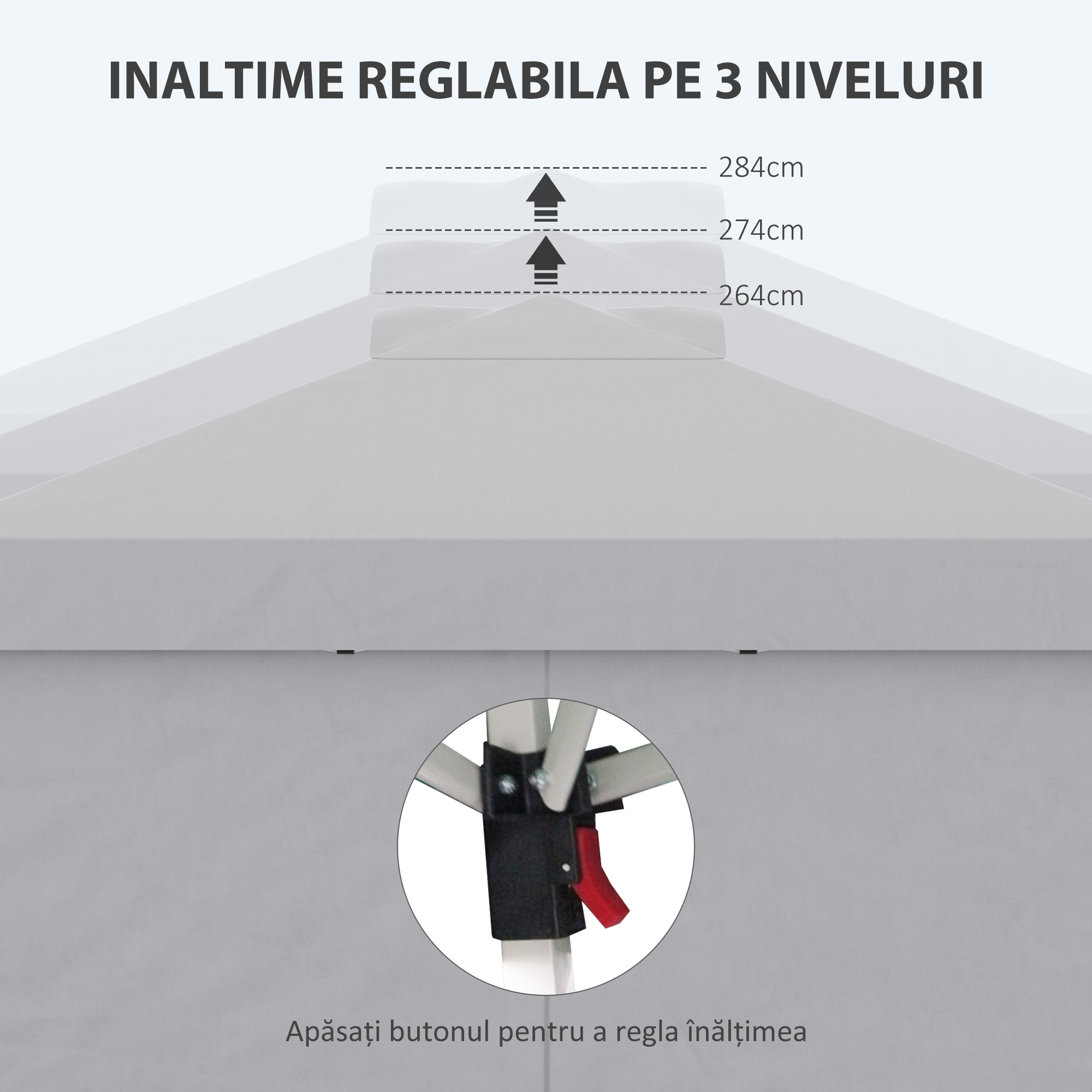 Fie ca planifici un camping, un gratar sau pur si simplu vrei sa-ti protejezi de soare canapeaua de gradina, pavilionul pliabil [BRAND NAME] este solutia perfecta. Se monteaza rapid, poate fi reglat pe inaltime si ofera protectie solara UV30+. Furnizat cu o geanta practica pentru un transport usor, acest cort pentru petreceri creeaza o zona perfecta pentru relaxare in zilele frumoase si insorite.