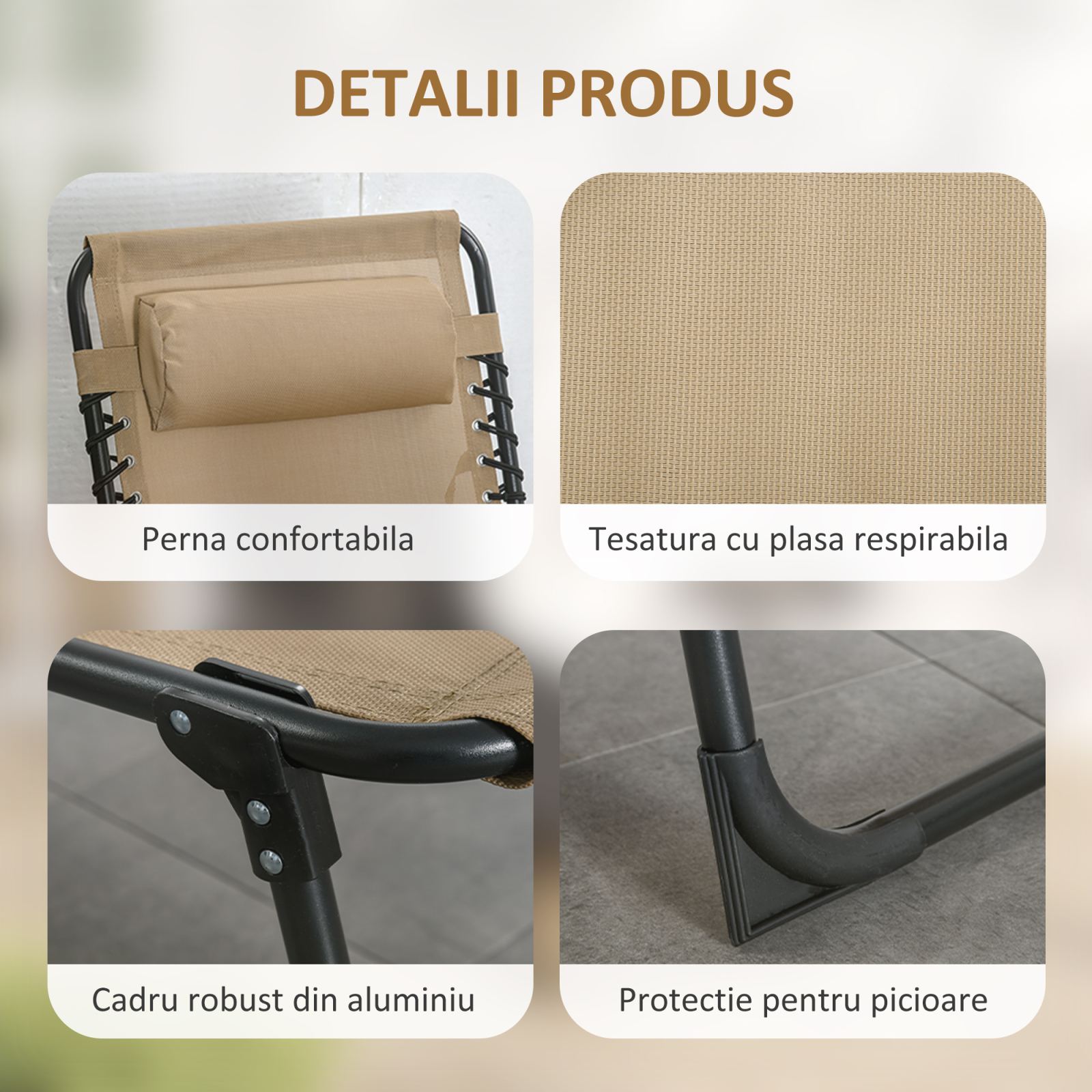 Este timpul sa iti pregatesti spatiul exterior pentru a te bucura de soare: cu sezlongul de gradina [BRAND NAME] creezi o oaza de relaxare in cateva secunde! Are un cadru solid din otel si material textil respirabil cu perna pentru cap, care fac structura rezistenta si confortabila. Designul pliabil al sezlongului iti permite sa il depozitezi intr-un spatiu redus si sa il transportezi usor oriunde doresti. Nu rata aceasta oportunitate!