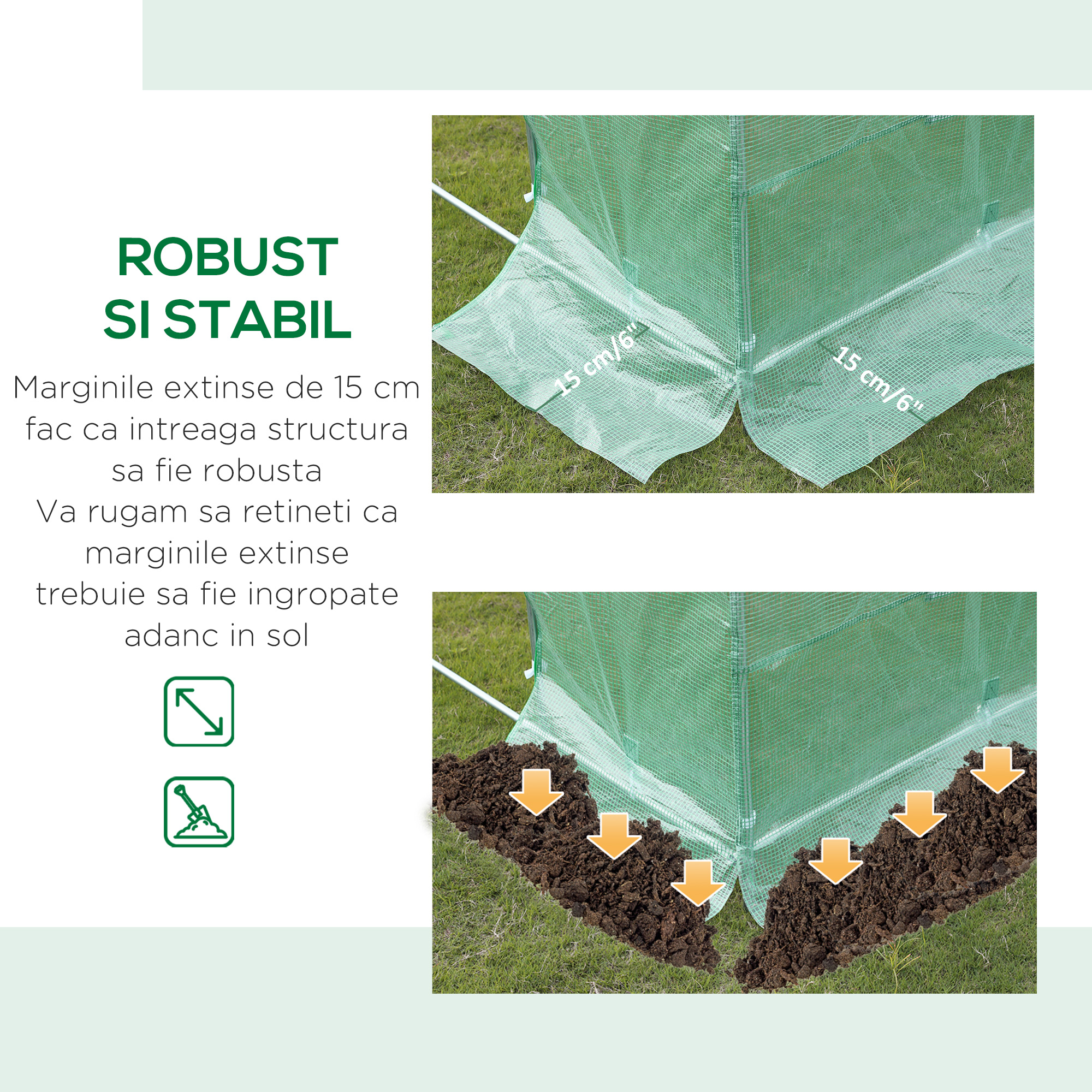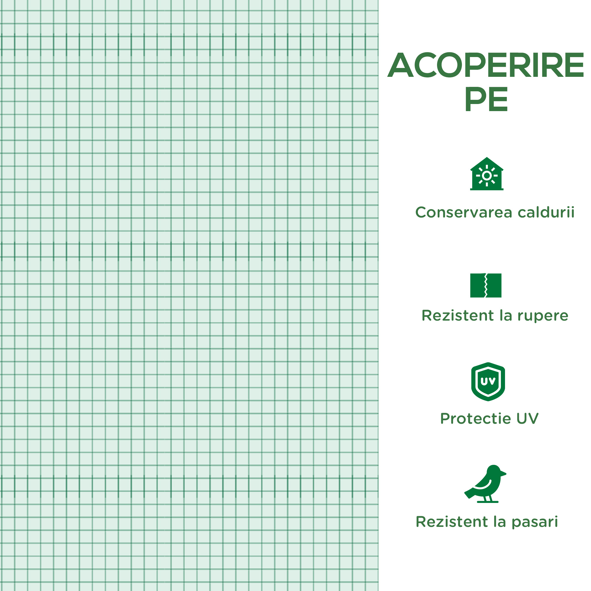Sunteti interesat de gradinarit si aveti nevoie de o modalitate de a ramane in pamant pe tot parcursul anului? Daca sera dvs. nu are copertina, nu inseamna neaparat ca trebuie sa cumperi o sera complet noua. Prelata noastra de sera [BRAND NAME] din plasa PE va poate rezolva problemele si va poate ajuta sa va mentineti plantele la temperatura perfecta. Rama vine cu 15 cm de margini extinse pentru a oferi o stabilitate sporita.