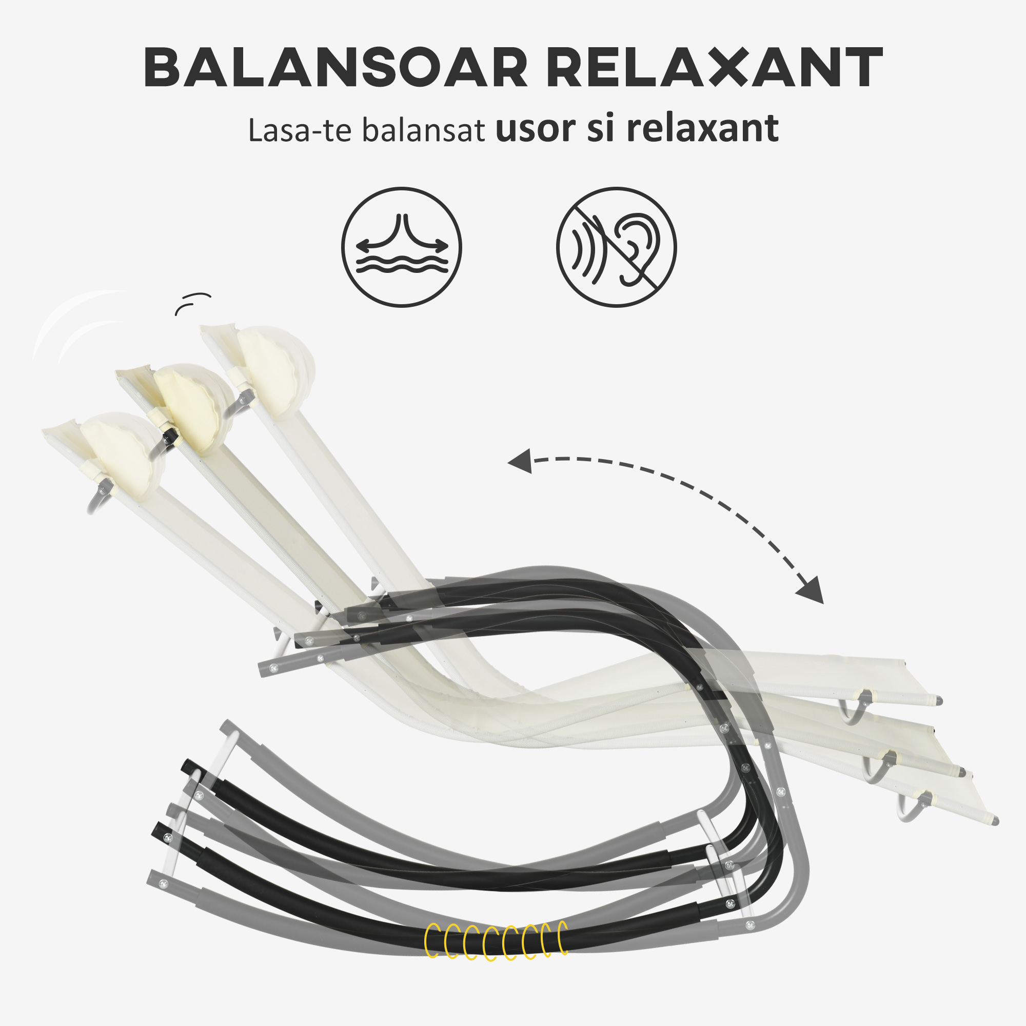 Descopera confortul suprem cu acest scaun balansoar ergonomic de la [BRAND NAME]. Construit pe o structura rezistenta din otel, cu material textil respirabil si tetiera detasabila, balansoarul ofera suport si relaxare pentru ore intregi. Designul sau modern si culorile neutre il fac perfect pentru terasa, balcon sau gradina - o invitatie zilnica la odihna.