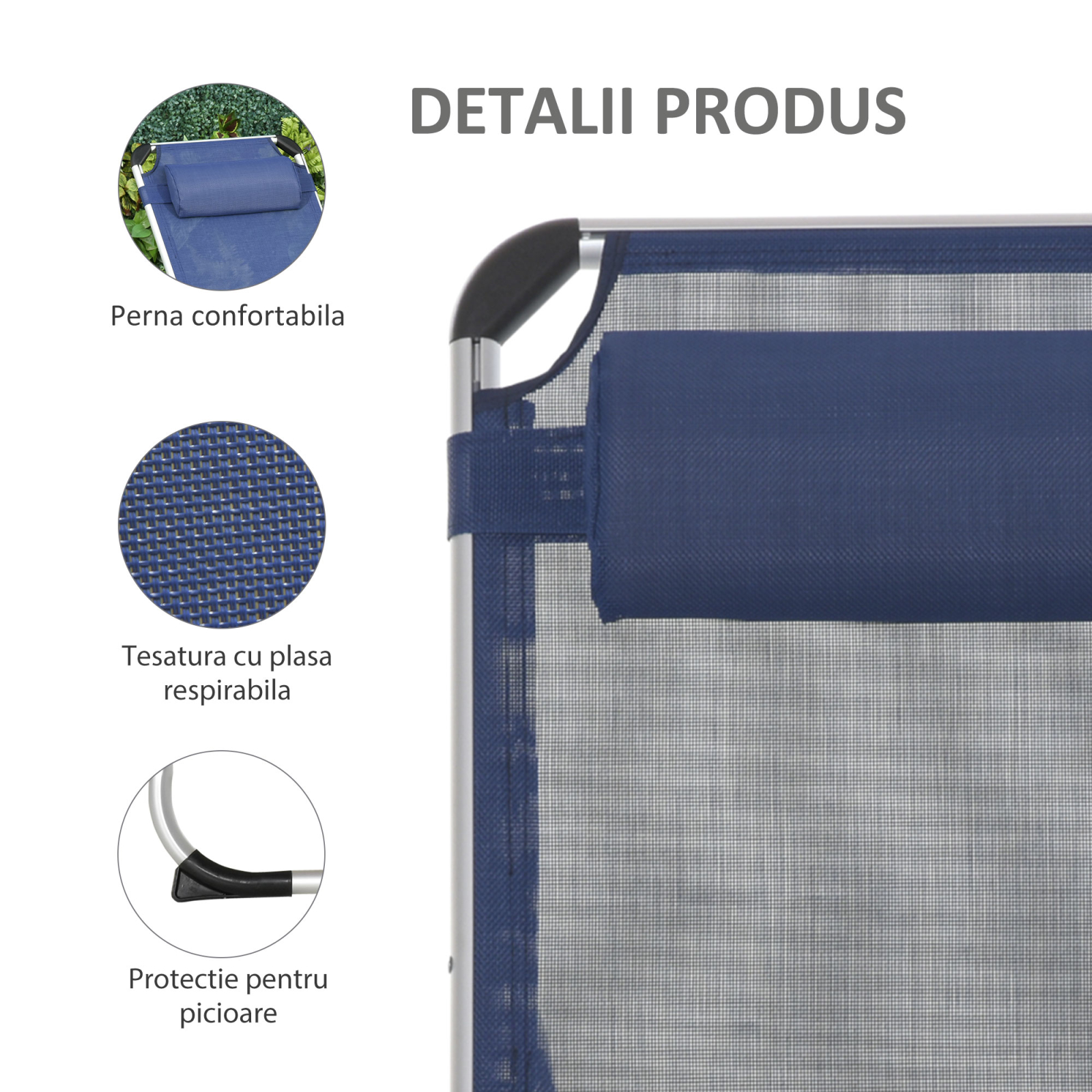 Sezlongul pliant [BRAND NAME] este solutia perfecta pentru cei care doresc sa se relaxeze pe un sezlong confortabil in aer liber. Are o structura din aluminiu care garanteaza stabilitate si rezistenta maxima, precum si o perna tetiera comoda detasabila. Sezlongul de gradina are un design pliabil in 3 sectiuni, care va permite sa-l depozitati intr-un spatiu mic si sa-l transportati in portbagajul masinii. Bucurati-va de fiecare moment in aer liber cu sezlongul nostru pliant!