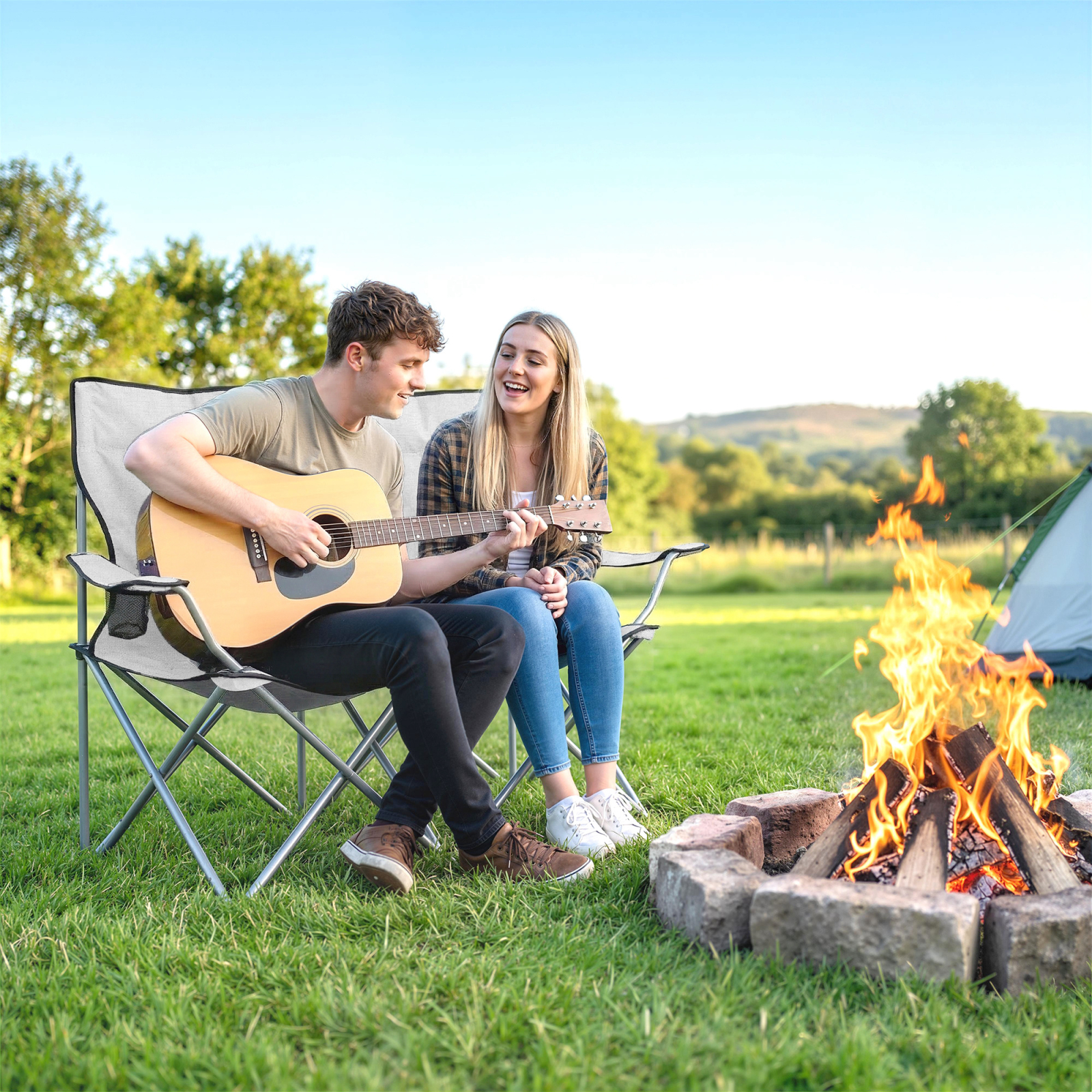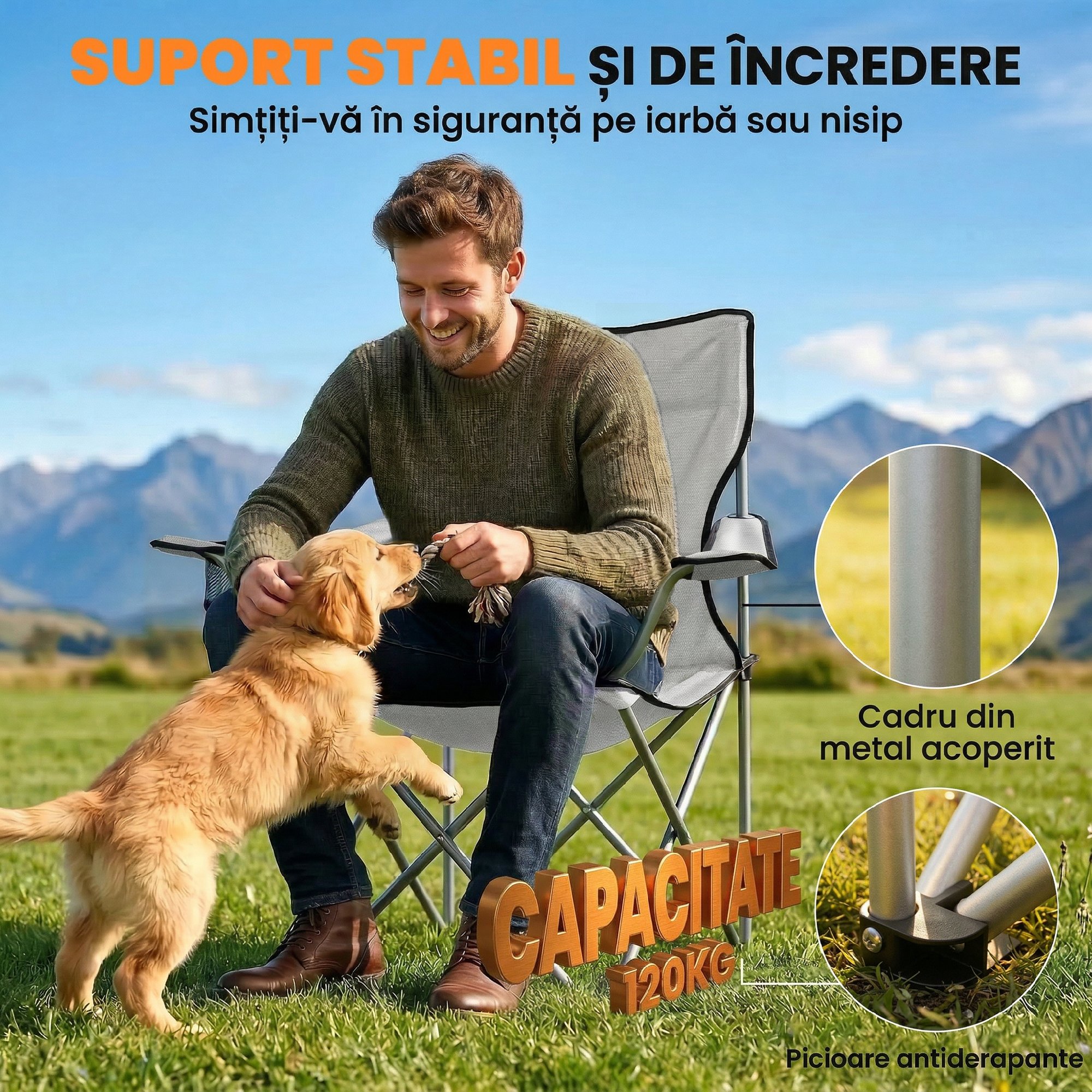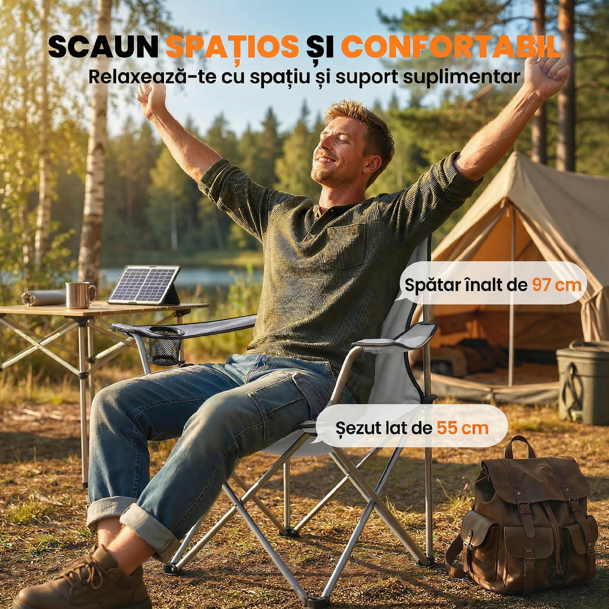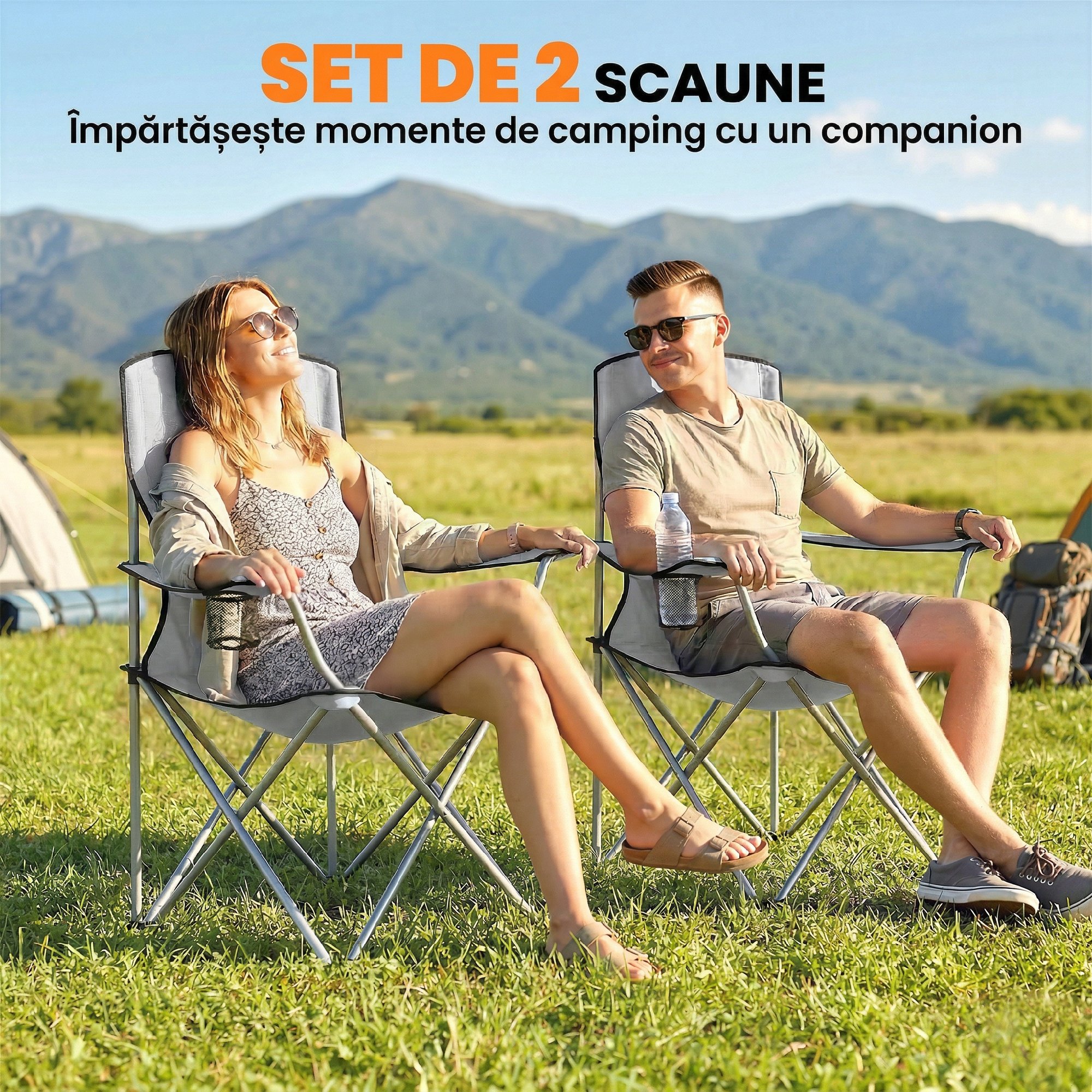 Gasirea unui loc confortabil pentru doi in aer liber poate fi dificila. Scaunele instabile strica relaxarea. Scaunele pliabile portabile [BRAND NAME] rezolva problema: structura stabila (120 kg), sezut larg si spatar inalt. Perfecte ca scaune de camping pliabile pentru a impartasi momente speciale in siguranta.