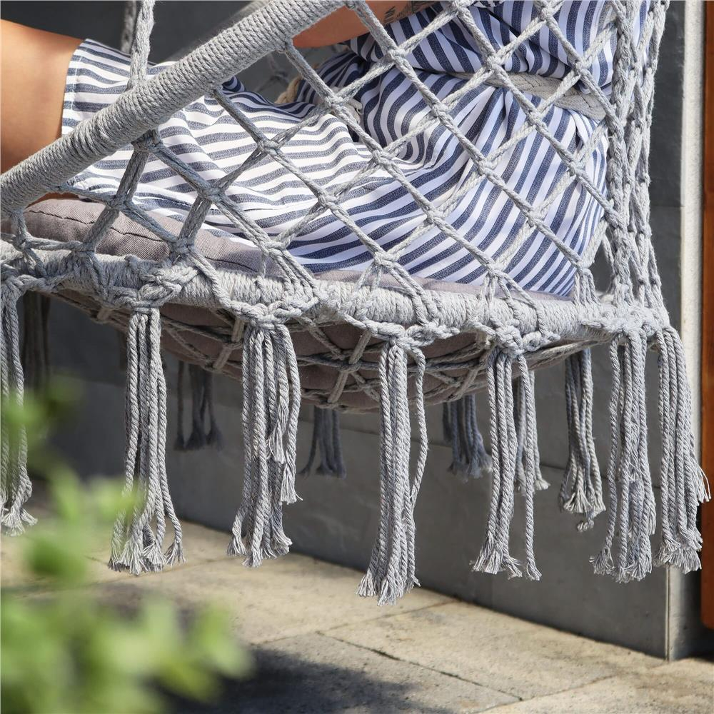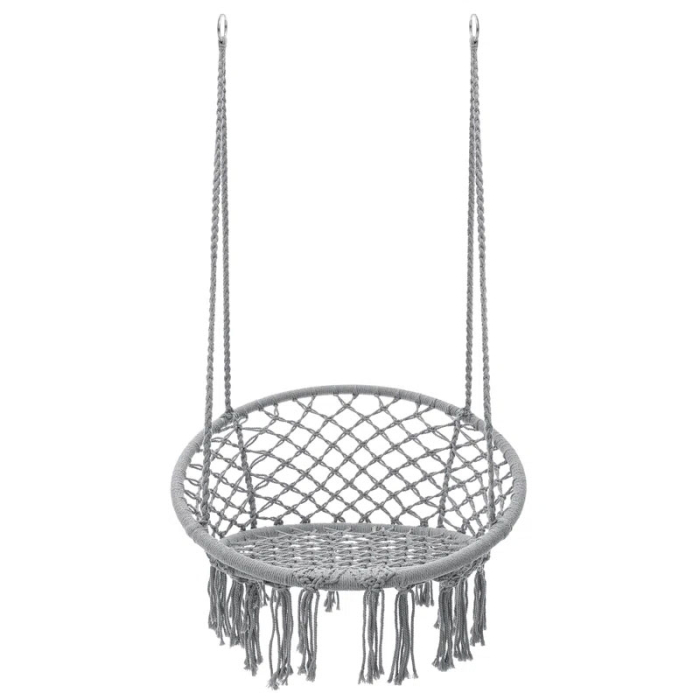 Brius Scaun rotund tip leagan suspendat pentru casa sau gradina, cu franjuri, 150kg, gri