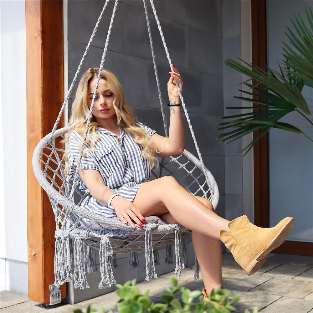 Leagan modern cu franjuri ce se potriveste perfect atat in casa cat si in gradina. Datorita spatarului confortabil, va bucura de relaxarea oferita dupa o zi grea.
