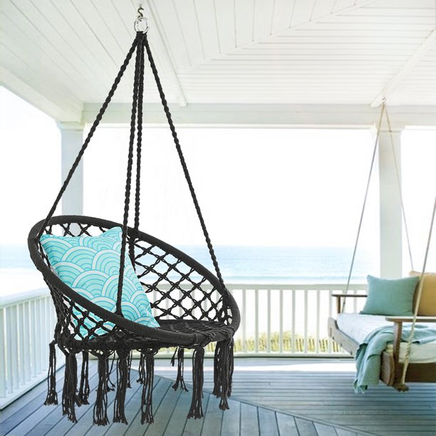Leagan modern cu franjuri ce se potriveste perfect atat in casa cat si in gradina. Datorita spatarului confortabil, va bucura de relaxarea oferita dupa o zi grea.