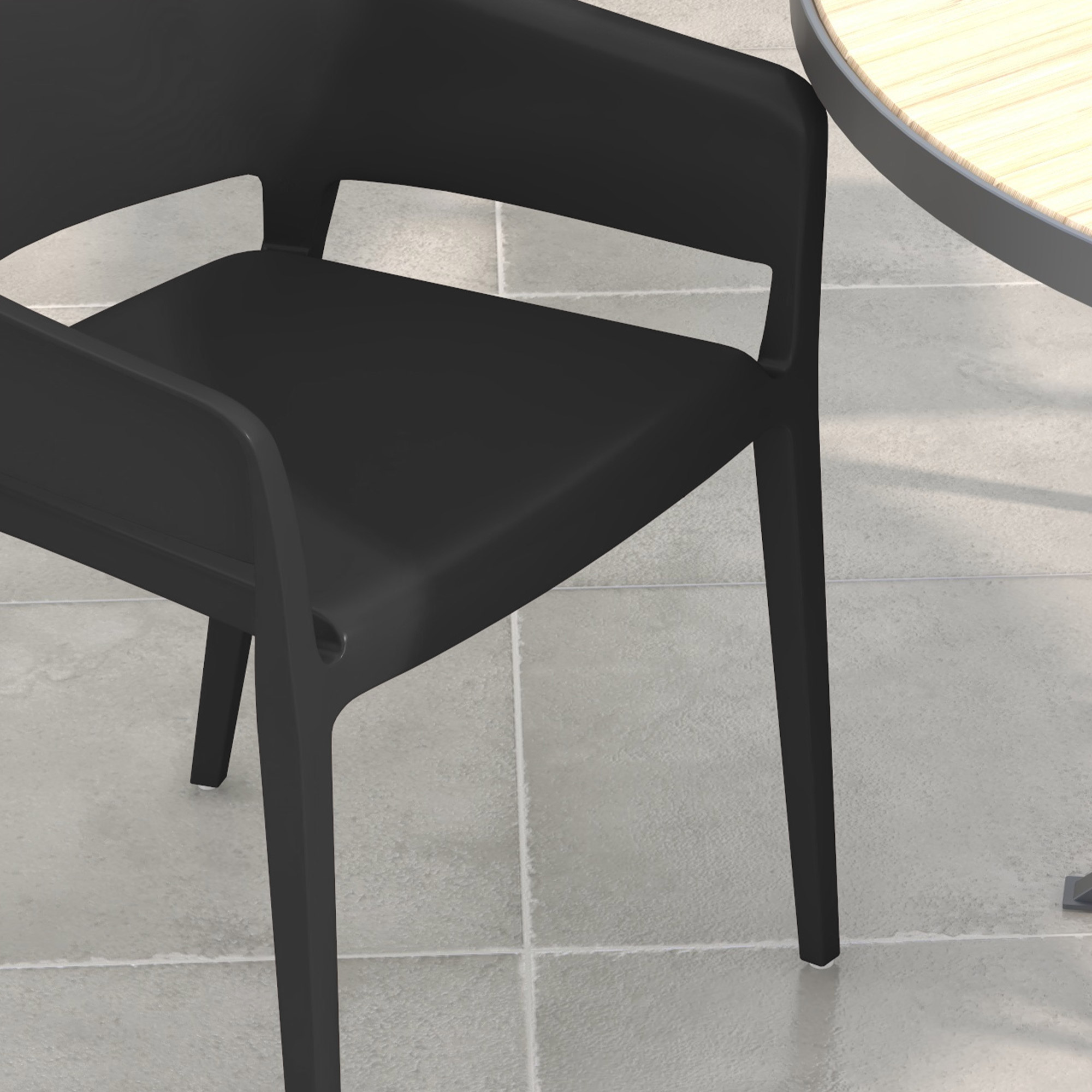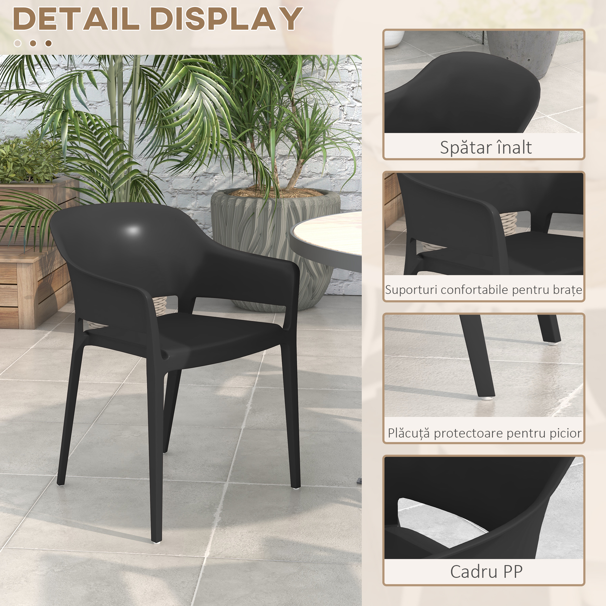 Relaxati-va si bucurati-va de aer liber alaturi de un insotitor, datorita acestui set de patru scaune de gradina stivuibile de la [BRAND NAME]. Avand un design ergonomic cu spatar inalt si cotiere, aceste scaune ofera suport optim pentru corpul dvs. Fabricate din material PP confortabil, ofera o experienta placuta de asezare. In plus, designul lor stivuibil permite o depozitare convenabila, facandu-le compacte si fara probleme. Rasfatati-va intr-un timp senin si relaxat cu scaunele noastre de gradina fiabile din metal.