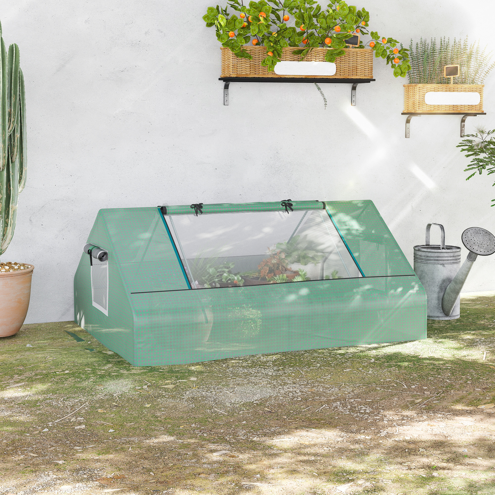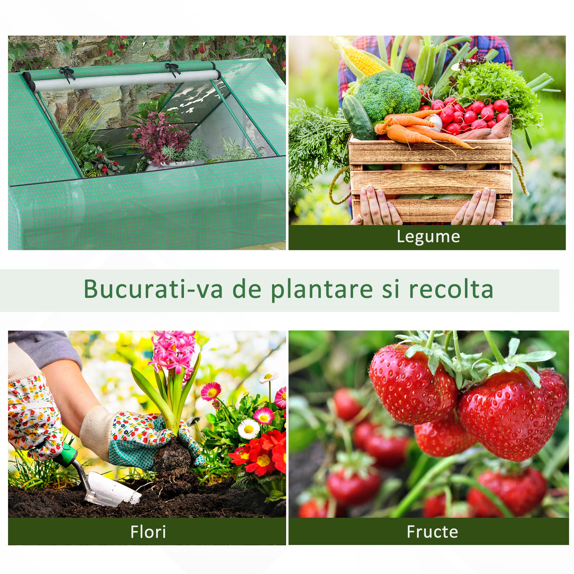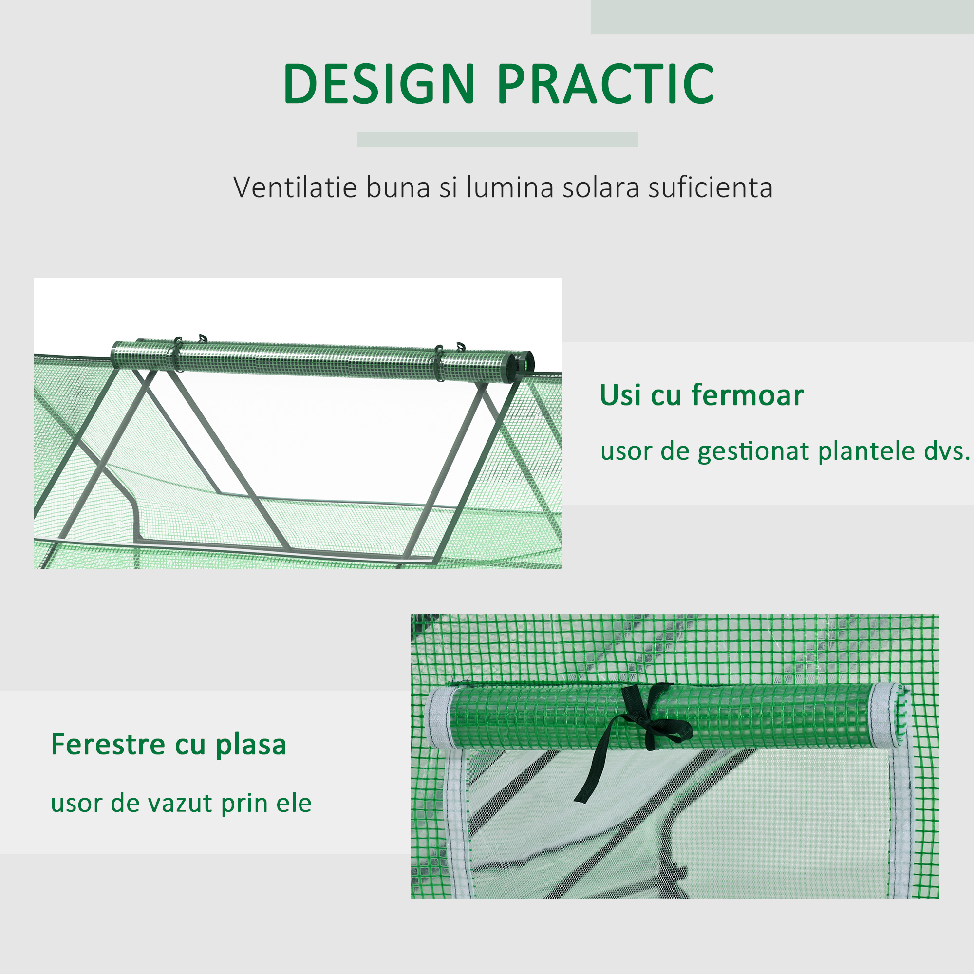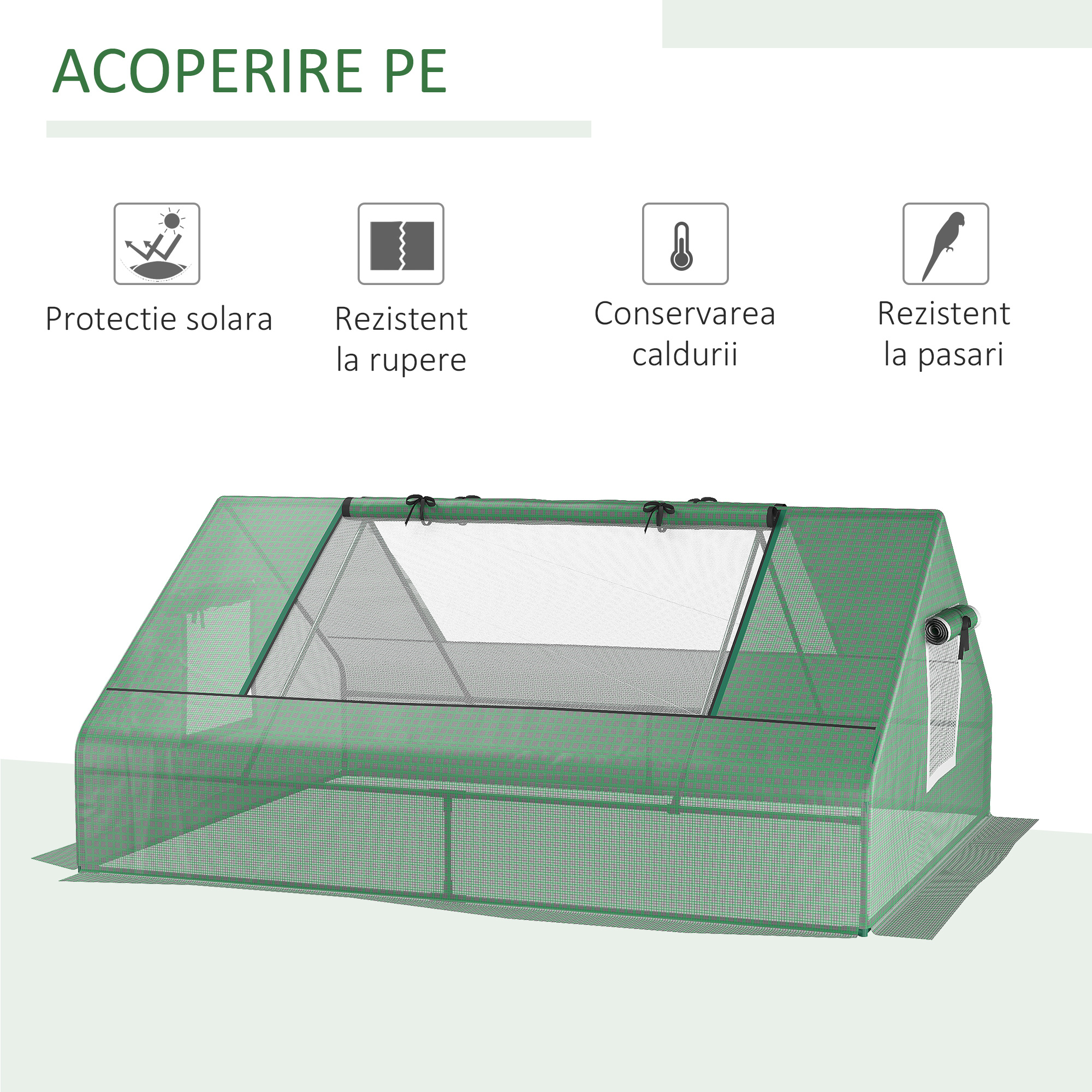 Cresteti propriile plante pe tot parcursul anului cu aceasta sera de gradina [BRAND NAME]. Realizata dintr-n cadru solid din otel si invelita in PE ranforsat, protejeaza plantele de intemperii si mentine umiditatea pentru a crea mediul perfect pentru orice tip de planta. Cele 2 usi rulante permit un acces usor in spatiul interior, iar ferestrele dinplasa faciliteaza ventilatia.