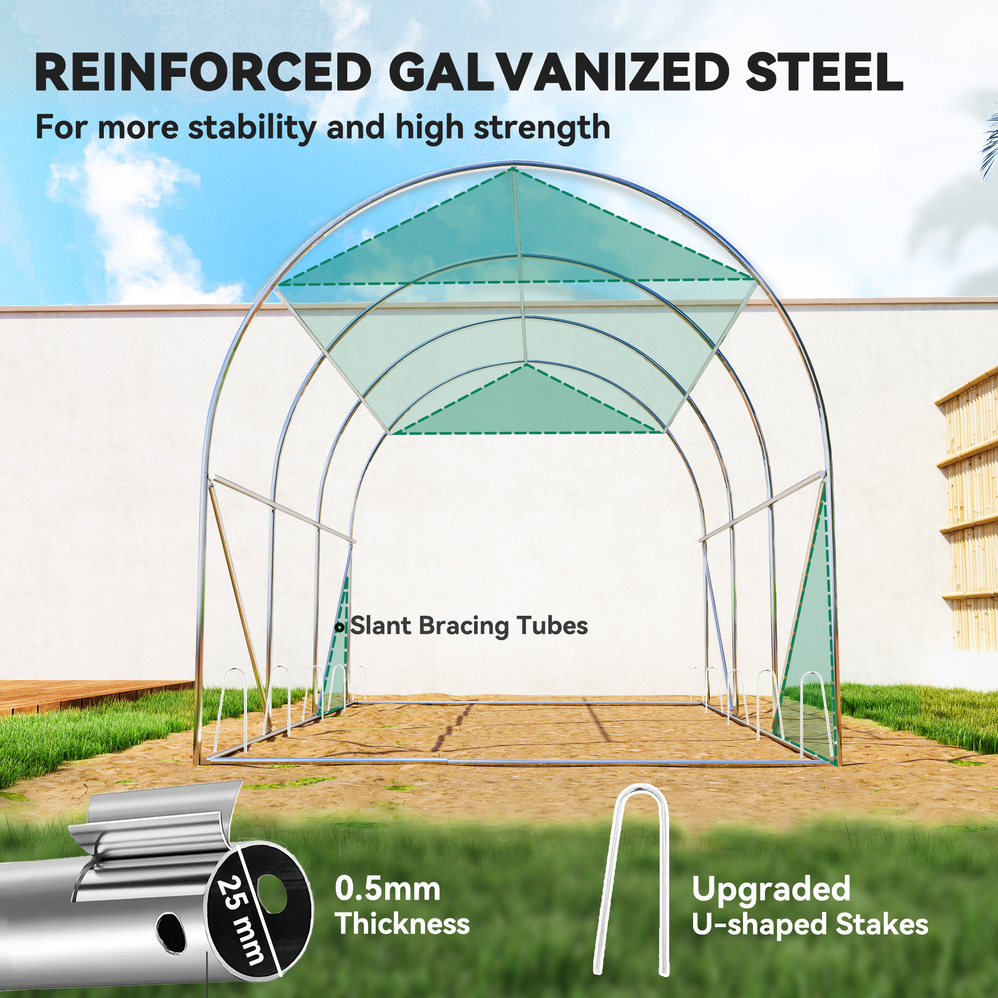 Gradinaritul pe tot parcursul anului este o placere unica de care te poti bucura cu aceasta sera tip tunel [BRAND NAME]. Datorita unei plase anti-UV si deschiderilor multiple cu plasa, care asigura ventilatia maxima si accesul facil, aceasta sera iti permite sa cultivi plante sanatoase in orice sezon. Folia din PE permite trecerea a 85% din lumina solara, oferind in acelasi timp protectie impotriva insectelor.