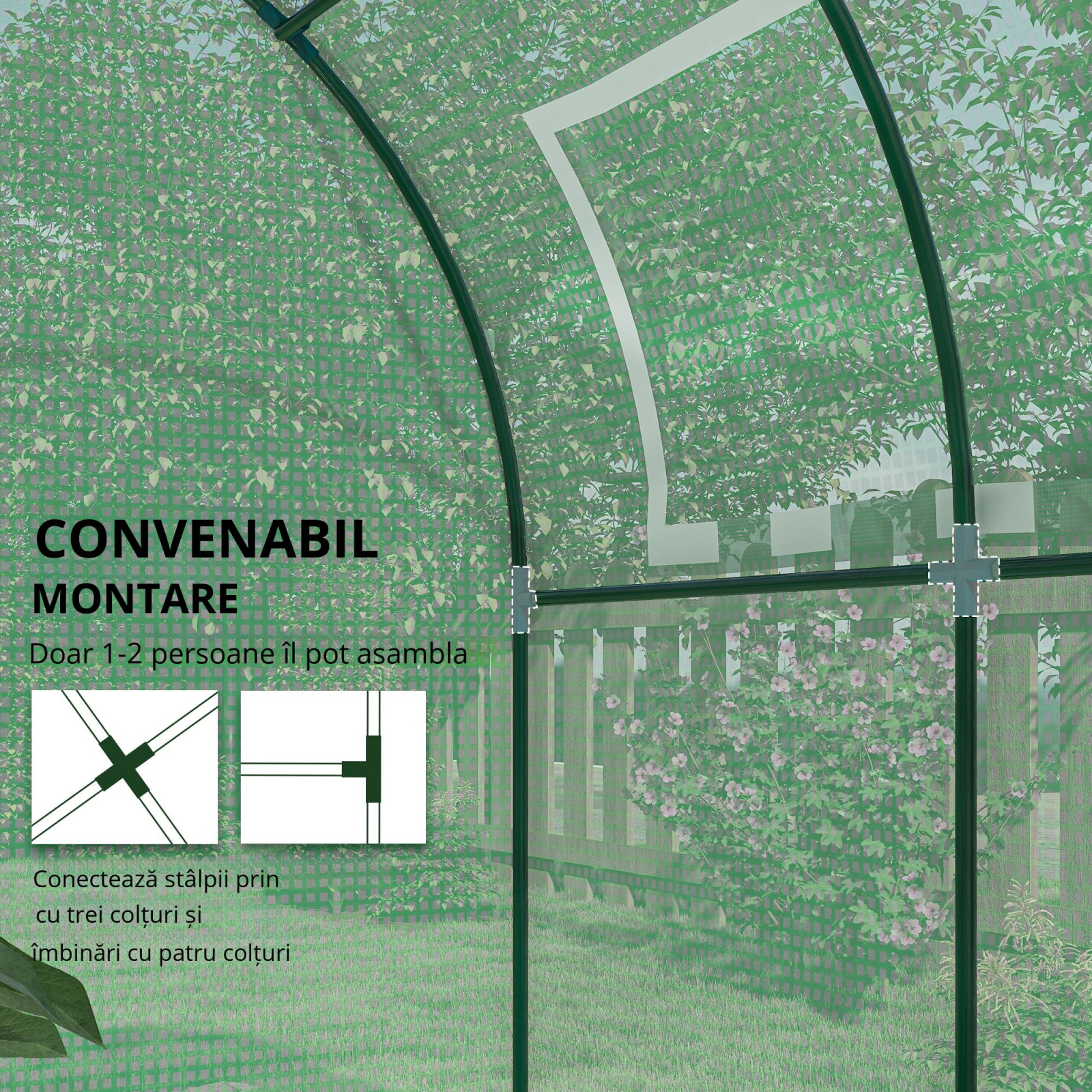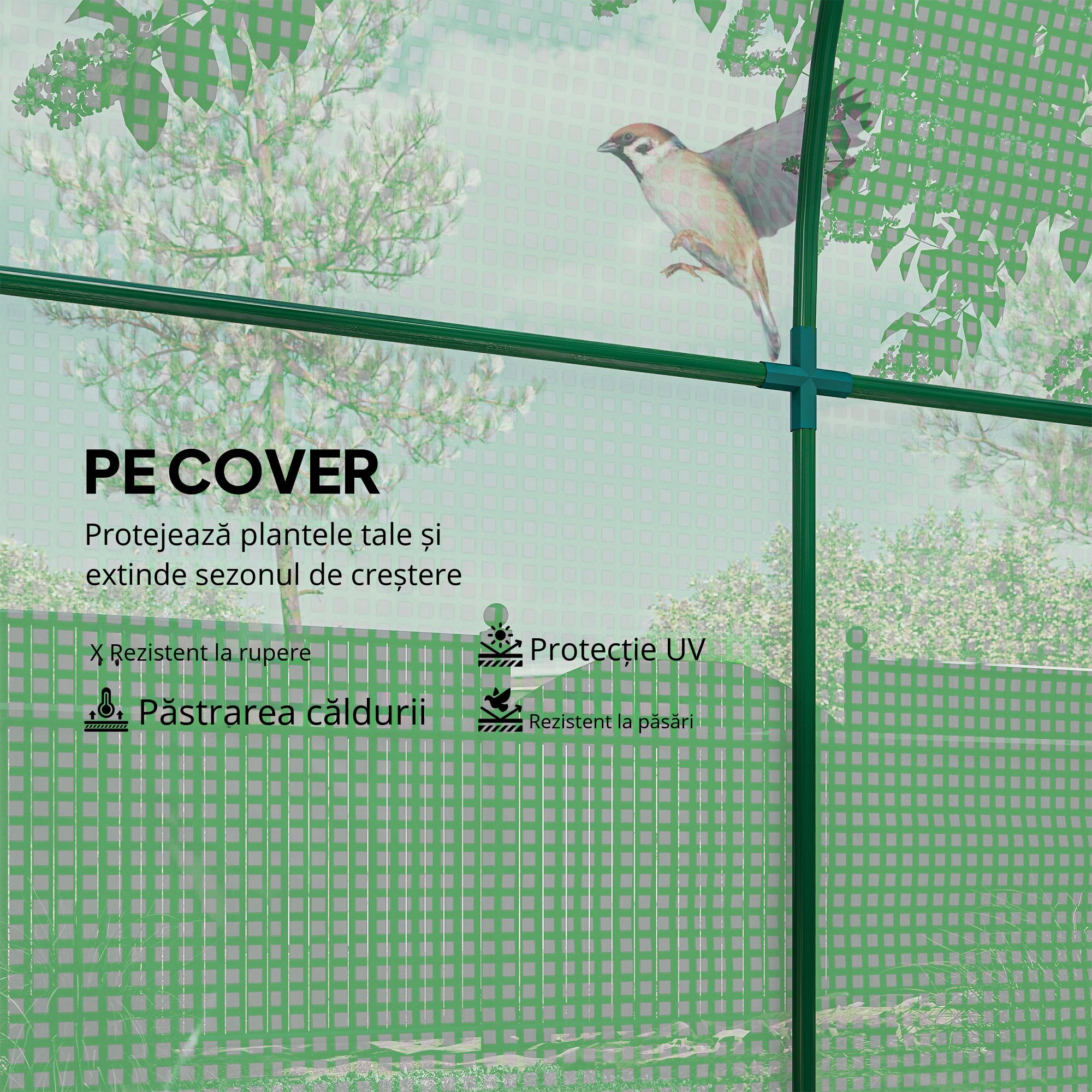 Creste-ti plantele preferate pe tot parcursul anului cu sera [BRAND NAME]! Designul serei tunel previne aglomerarea de apa pe acoperis, iar usile si ferestrele rulante asigura un flux optim de aer. Invelisul PE cu dublu strat protejeaza plantele de razele UV, asigurand in acelasi timp trecerea luminii pentru ca plantele sa creasca.