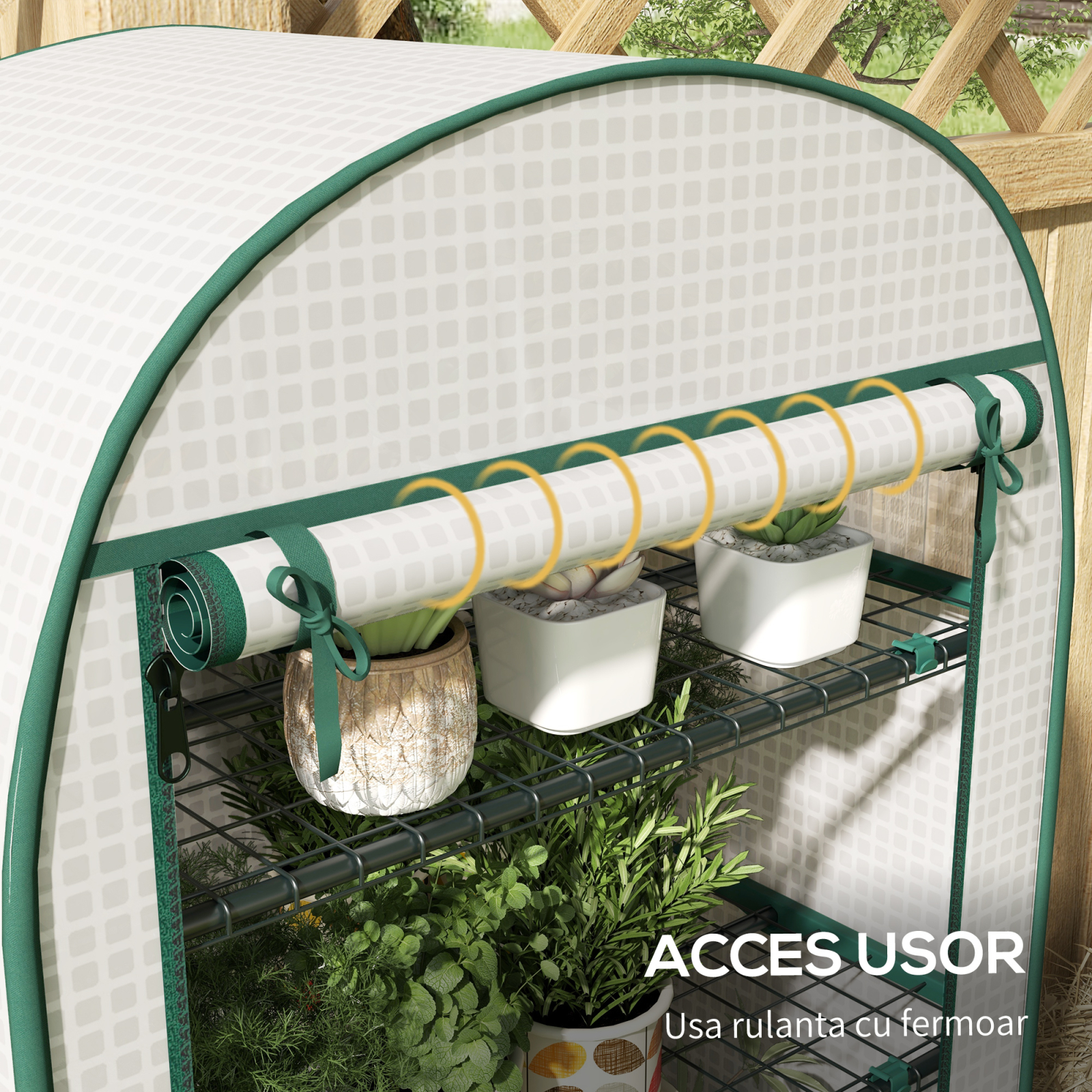 Achizitioneaza aceasta sera de gradina [BRAND NAME] pentru a prelungi sezonul de cultivare al plantelor tale si a le proteja de frig si animale. Structura sa din otel asigura stabilitate, iar acoperirea din PE protejeaza interiorul de vant si ploaie, retinand totodata caldura. Sera este dotata cu o usa rulabila, permitand acces usor pentru a ingriji plantele si a muta uneltele in orice moment.