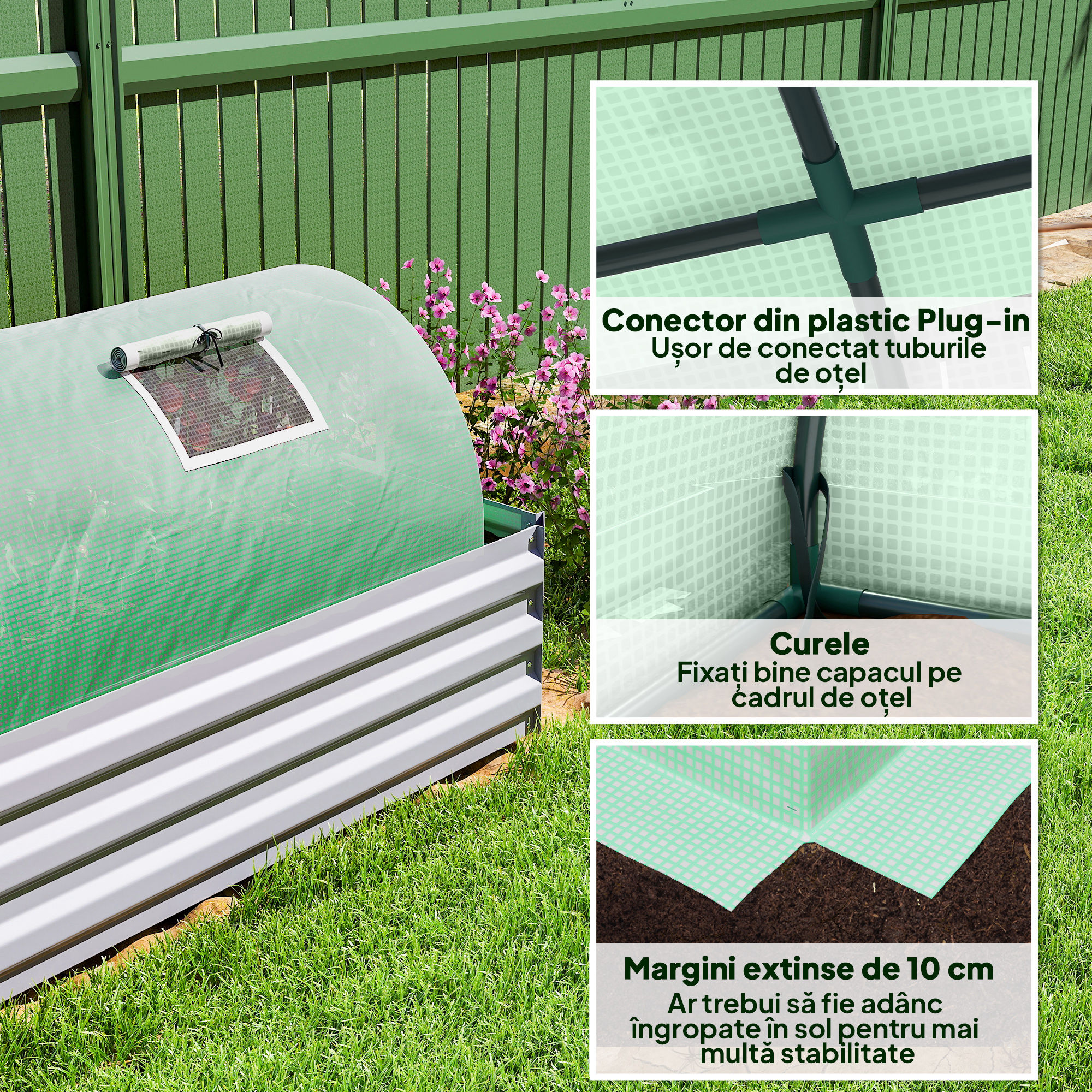 Sera de gradina [BRAND NAME] iti permite sa cultivi legume si plante oriunde. Datorita unei structuri robuste din otel si unei acoperiri din plastic ranforsat, mini-sera noastra este suportul ideal pentru a rezista la intemperiile naturii. Sera are, de asemenea, 3 ferestre superioare si 2 laterale cu plasa pentru a asigura o ventilatie optima, ideala chiar si pentru spatiile exterioare mici din mediul urban.