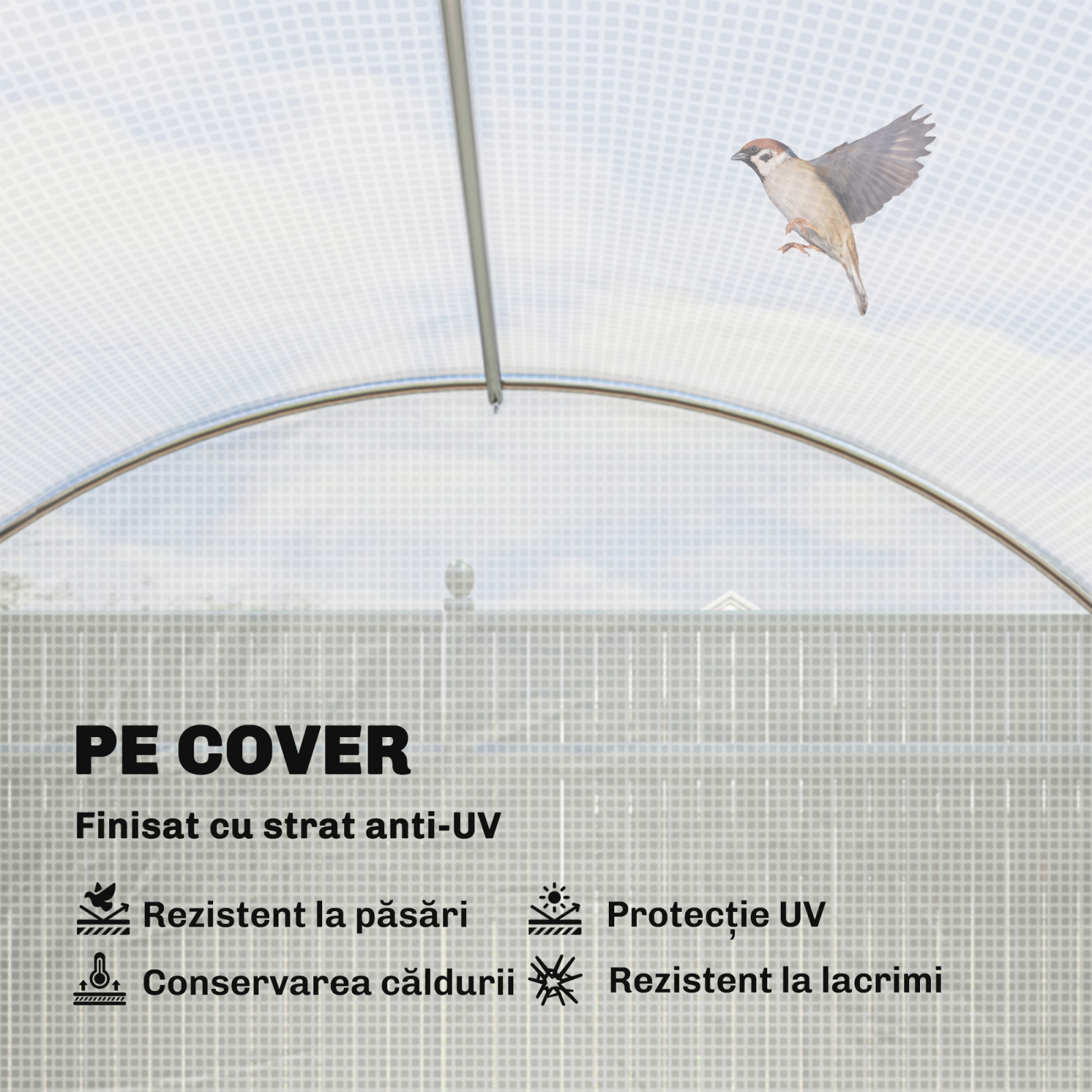 Aceasta sera de gradina [BRAND NAME], cu structura solida din tevi de otel si acoperire din PE de inalta calitate, este ideala pentru protejarea plantelor de factorii externi. Protejeaza impotriva prafului, ploii si parazitilor, asigurand in acelasi timp o temperatura optima. Sera tip tunel este echipata cu o usa cu fermoar rulabil pentru acces facil si ofera o ventilatie perfecta, precum si control al umiditatii interne.