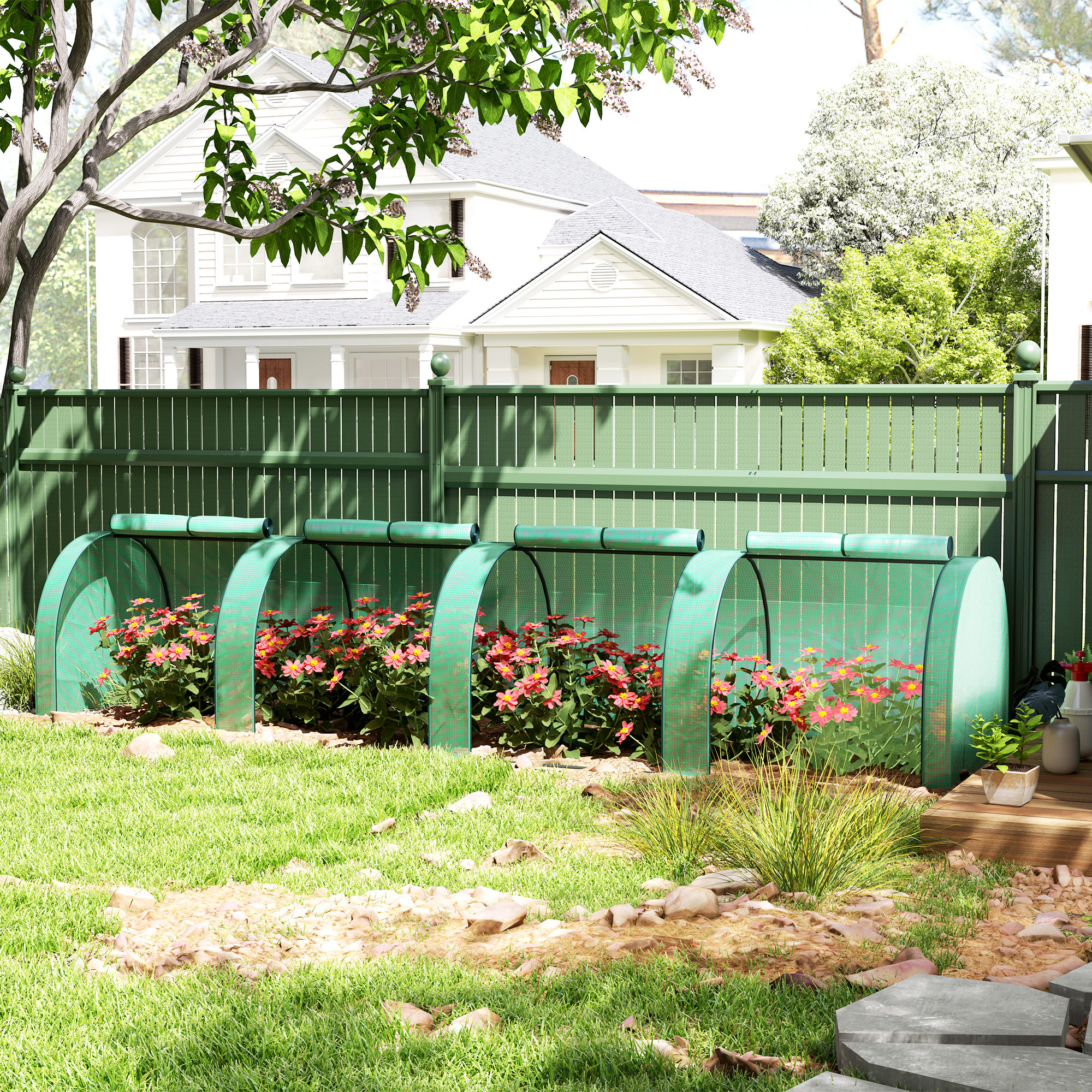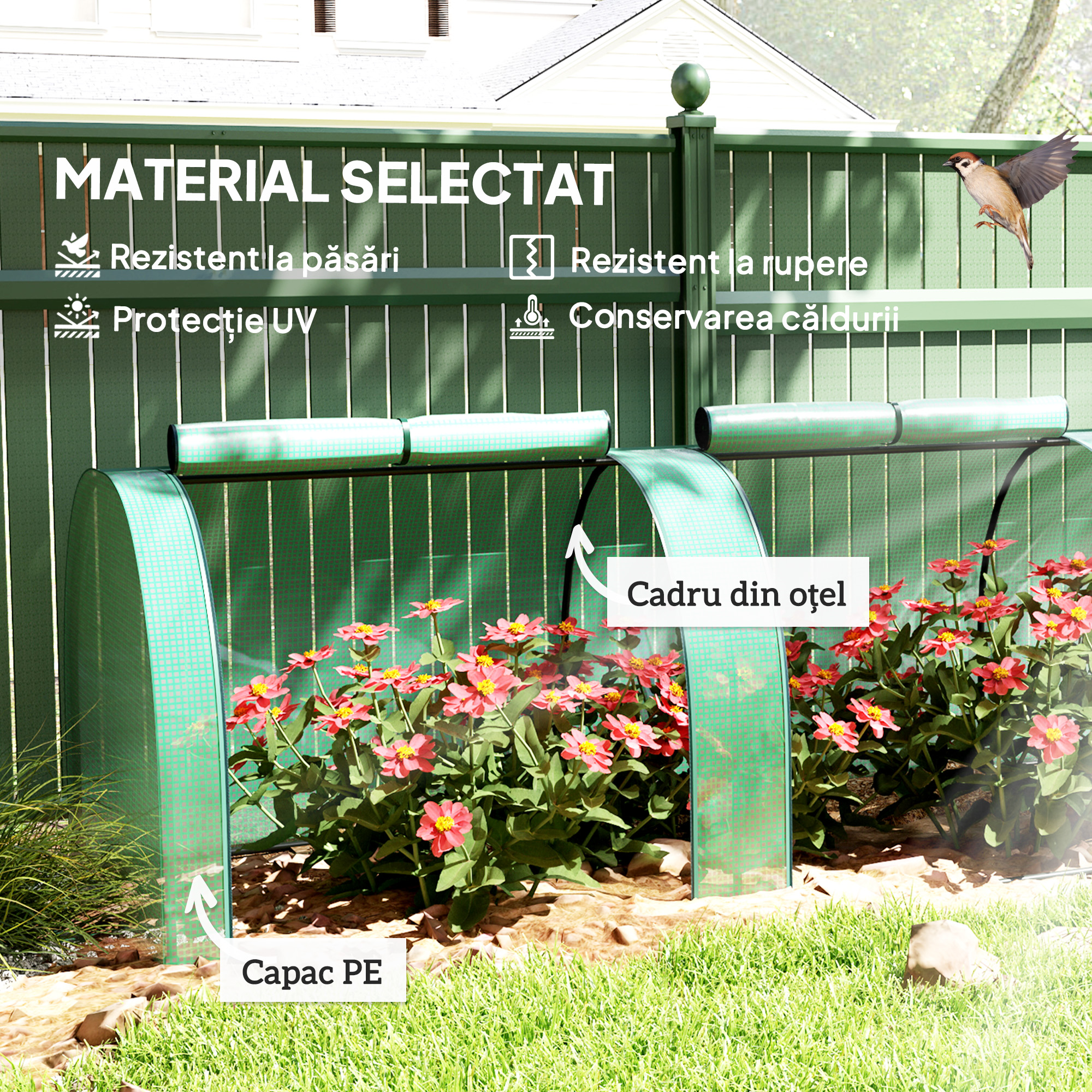 Cultivati plante, legume si flori in siguranta pe tot parcursul anului cu sera noastra tip tunel de la [BRAND NAME]. Echipata cu un cadru din otel pentru a asigura rezistenta si durabilitate, aceasta sera de gradina are o acoperire robusta care protejeaza plantele de frig, oferind totodata multa lumina solara pentru hranirea si cresterea lor. Acoperirea este prevazuta cu usi cu fermoar, care permit acces facil si o ventilare optima.