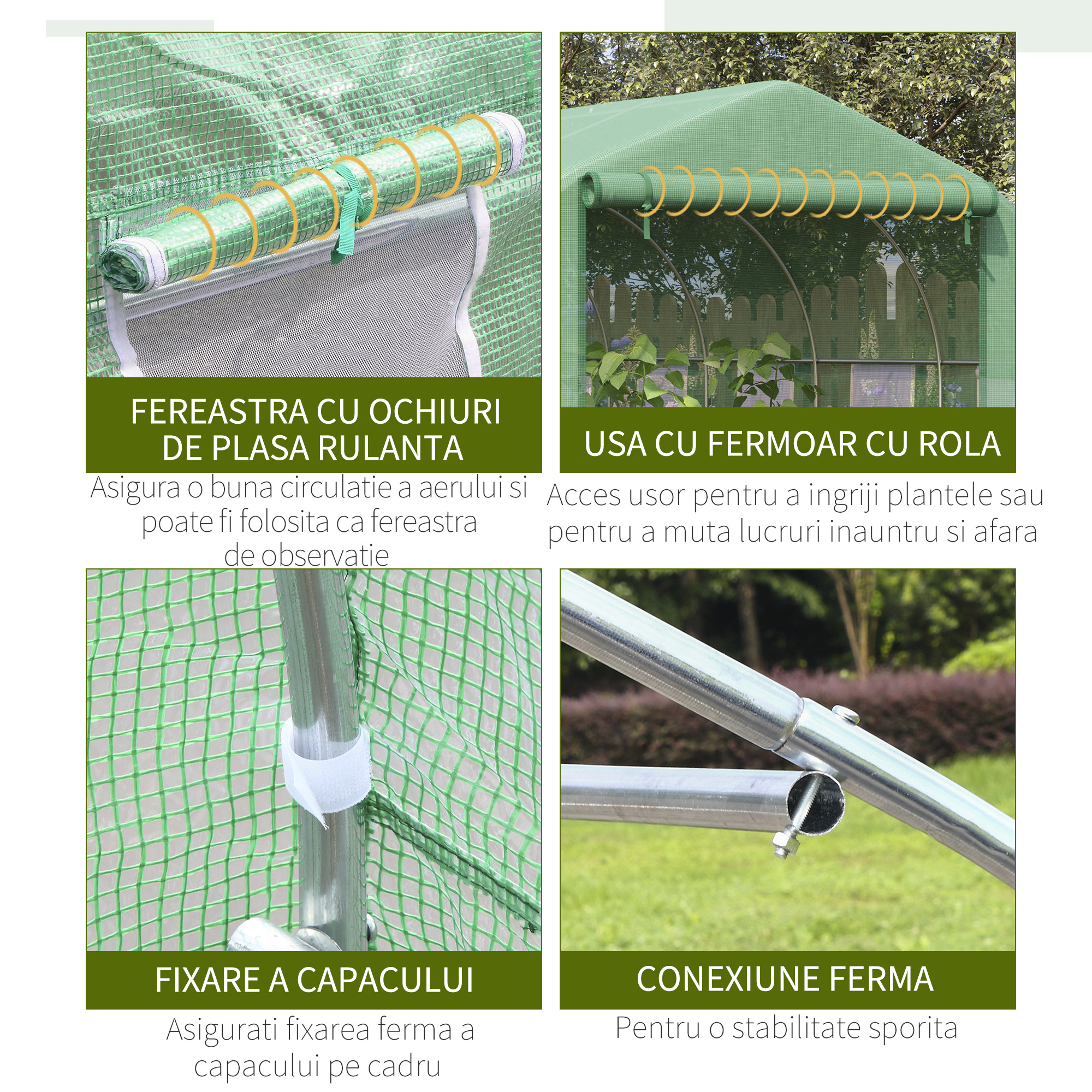 Creeaza-ti propriul colt de natura in gradina cu sera tunel [BRAND NAME]. Aceasta sera spatioasa este realizata dintr-un cadru robust din otel si acoperita cu material PE rezistent la razele UV si umiditate. Cu o usa tip rulou frontala si 6 ferestre cu plasa, sera ofera un echilibru ideal intre aerisire si protectie impotriva daunatorilor. Ideala pentru cultivarea legumelor, fructelor si florilor pe tot parcursul anului, fiind solutia perfecta pentru gradinarii pasionati care vor sa-si extinda sezonul de plantare.
