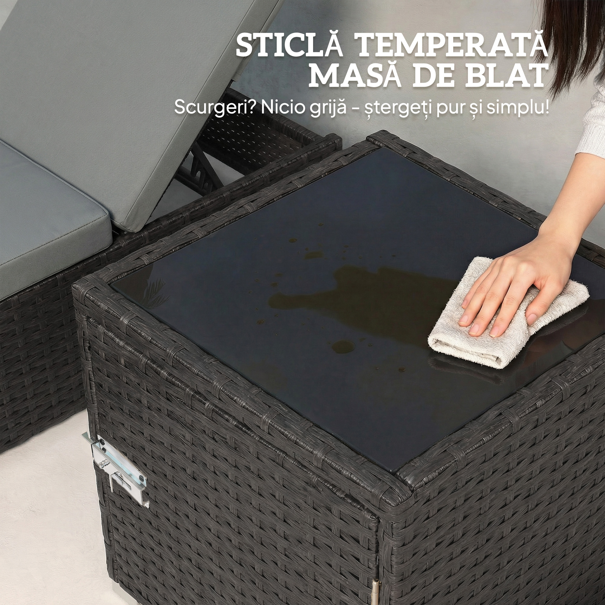 Momentul acela de relaxare impartasit in gradina ta pare mereu de neatins. Te simti inconfortabil, fara sa gasesti pozitia potrivita sau un loc pentru bautura ta. Acest set de sezlonguri de gradina [BRAND NAME] este solutia. Include o masuta laterala si doua sezlonguri cu spatar reglabil in 6 pozitii pentru un confort maxim. Bucura-te de pernele groase de 5 cm ale acestor sezlonguri din ratan si relaxeaza-te impreuna cu cei dragi.