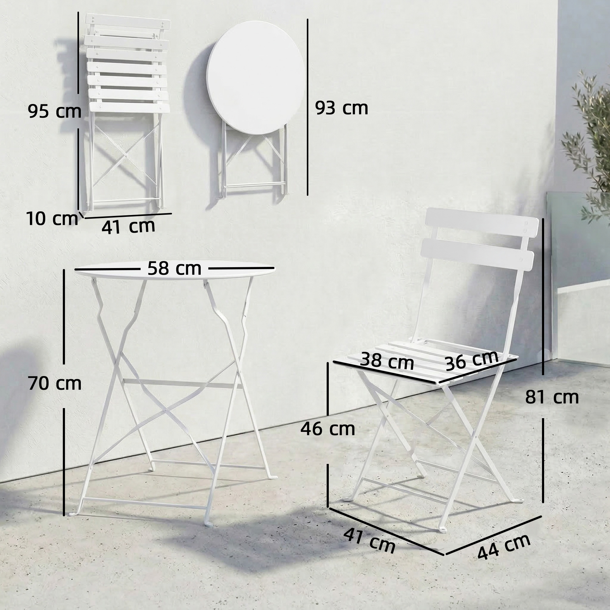Crearea unui colt exterior primitor poate fi dificila, intre montajele complicate si mobilierul rezistent la vreme. Setul bistro de exterior este gata de utilizare, creand imediat un spatiu elegant pentru doua persoane. Cadrul metalic rezistent la intemperii ofera frumusete durabila cu intretinere minima. Dupa utilizare, poate fi pliat pentru a elibera balconul sau terasa, oferindu-ti relaxare fara efort oricand doresti.