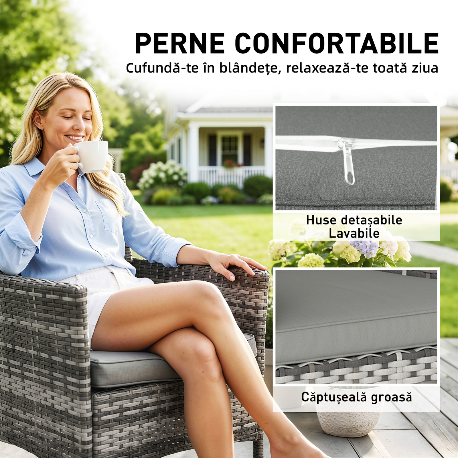 Material: Rattan PE (rattan sintetic din polietilena), Otel