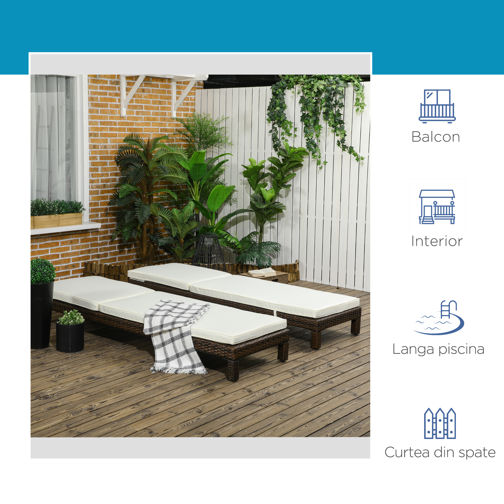 Bucura-te de confort suprem la soare cu acest set de doua sezlonguri [BRAND NAME] din ratan PE, perfecte pentru gradina, piscina sau terasa. Spatarul reglabil in 5 pozitii si pernele capitonate ofera relaxare personalizata, iar cadrul robust garanteaza stabilitate. Un plus de eleganta si functionalitate pentru spatiul tau exterior.