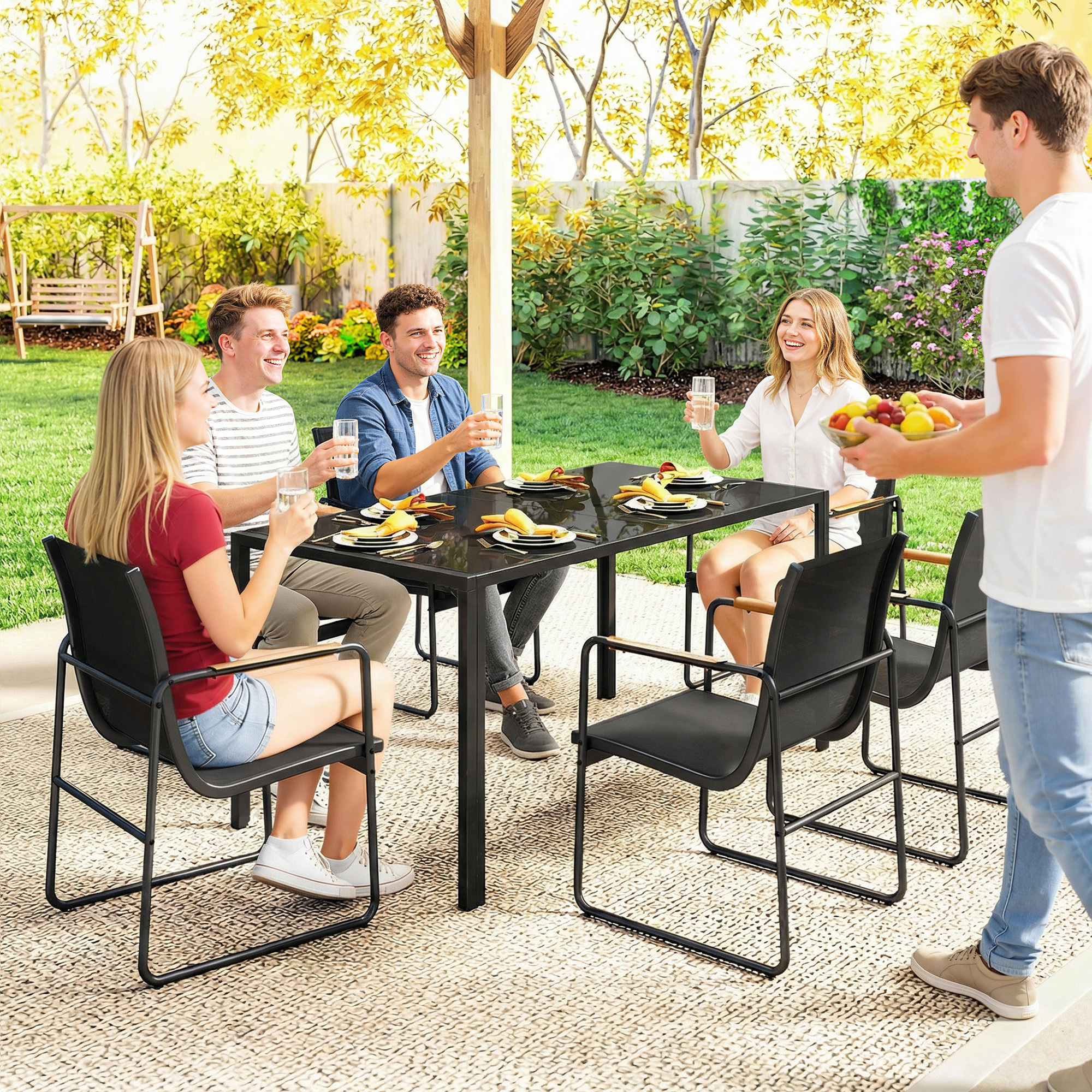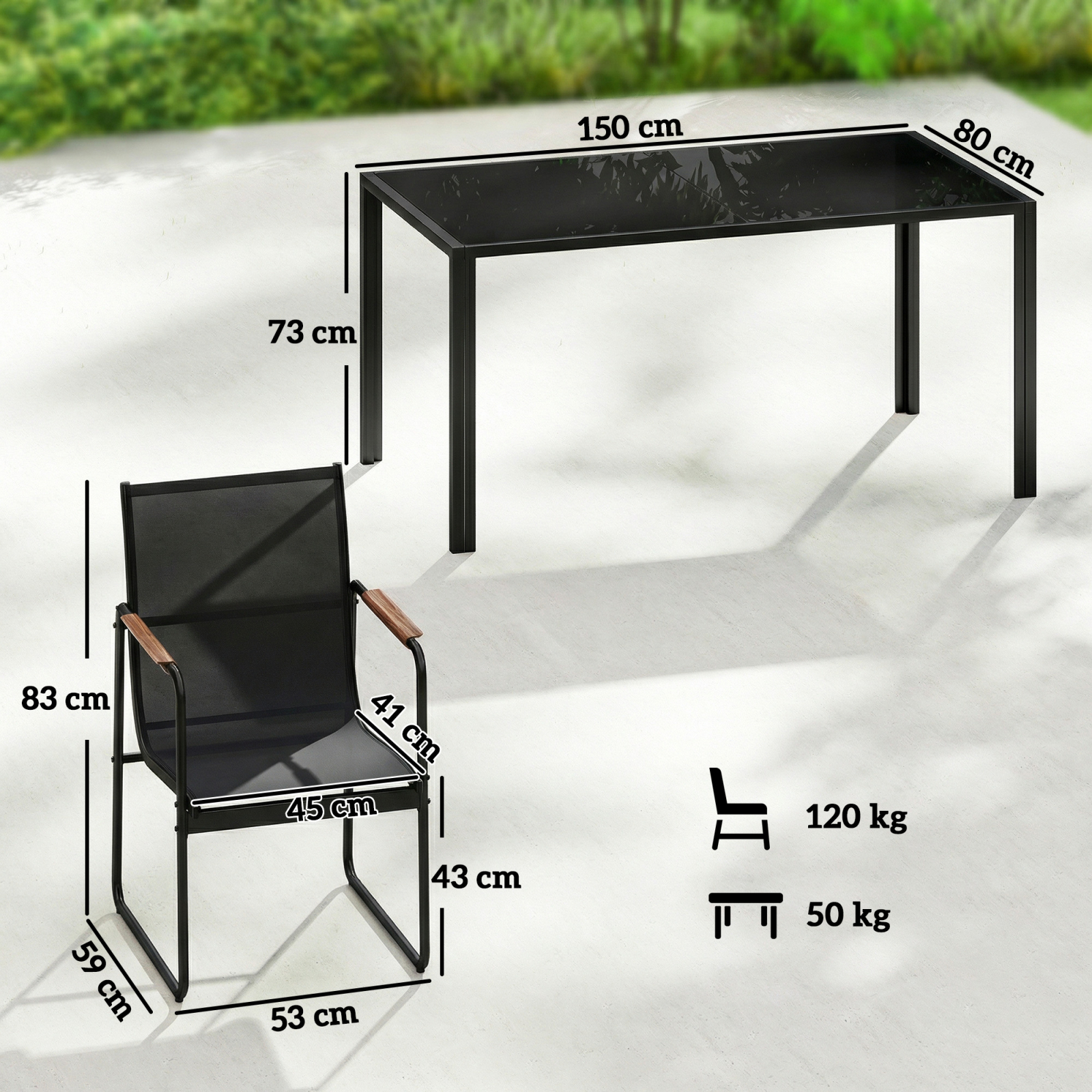 Indiferent daca este vorba despre un brunch de weekend, o cina de seara sau momente de relaxare cu prietenii, acest set de masa si scaune de gradina [BRAND NAME] este locul ideal. Cu cadre din otel pentru scaune si masa asortata, ofera durabilitate si confort datorita tesaturii din plasa respirabila. Perfect pentru zilele si serile de vara in aer liber cu setul nostru de masa de gradina.