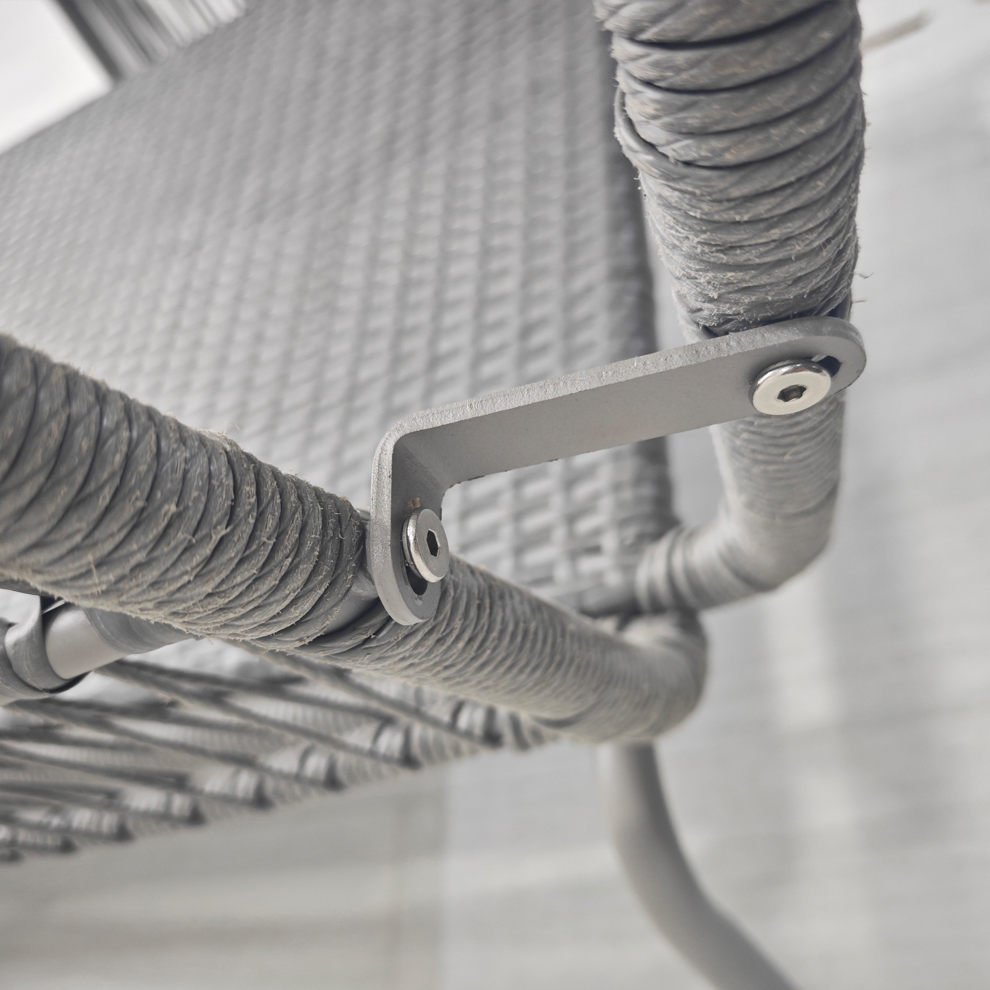 • • Cadru solid si durabil din otel cu ratan din PE robust