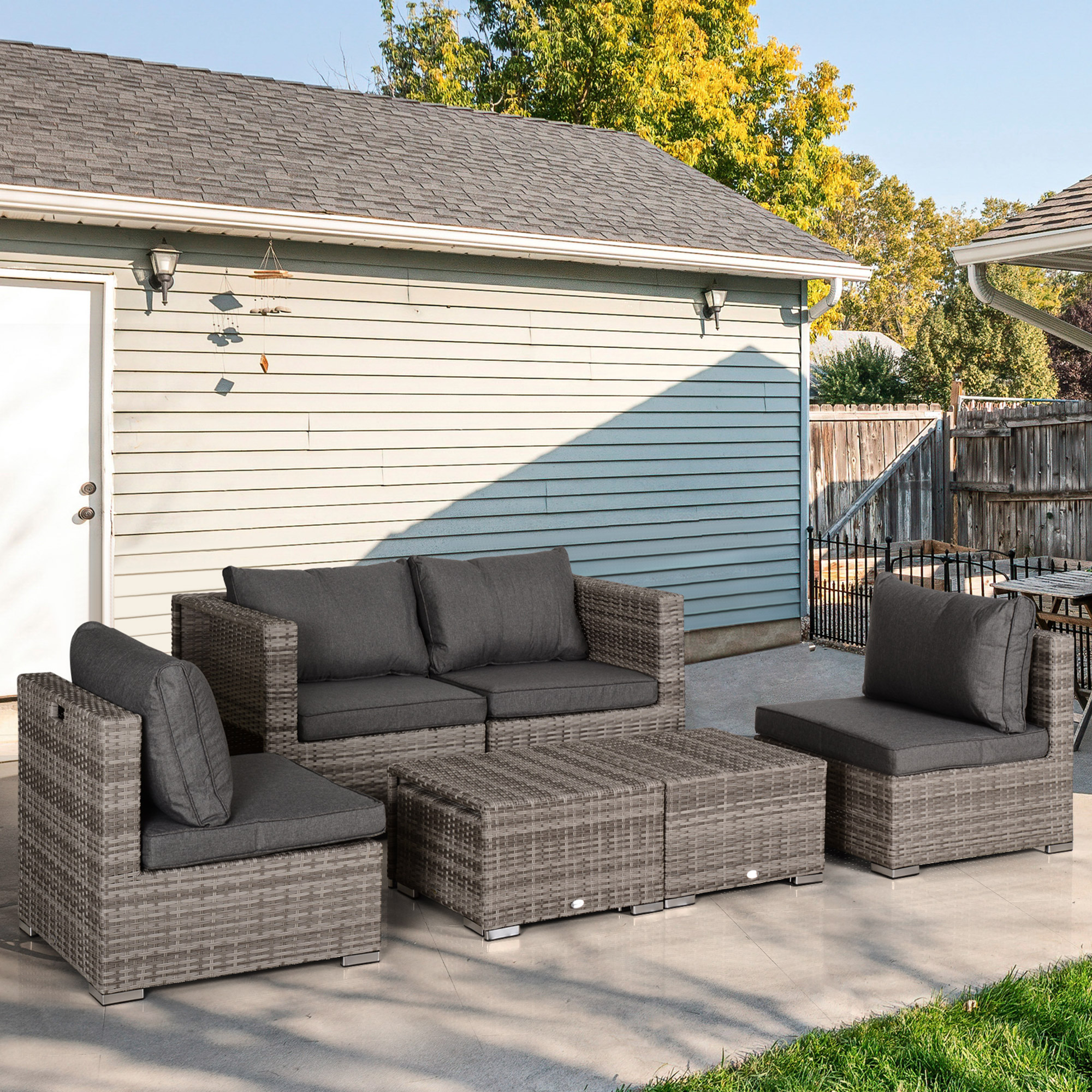 Transforma-ti gradina intr-un spatiu de relaxare modern cu setul de mobilier de exterior [BRAND NAME] format din 8 piese. Structura solida din aluminiu combinata cu ratanul PE rezistent la intemperii ofera durabilitate si confort. Include canapele modulare cu perne groase si o masa de cafea cu blat de sticla. Ideal pentru terase, foisoare sau spatii lounge in aer liber.