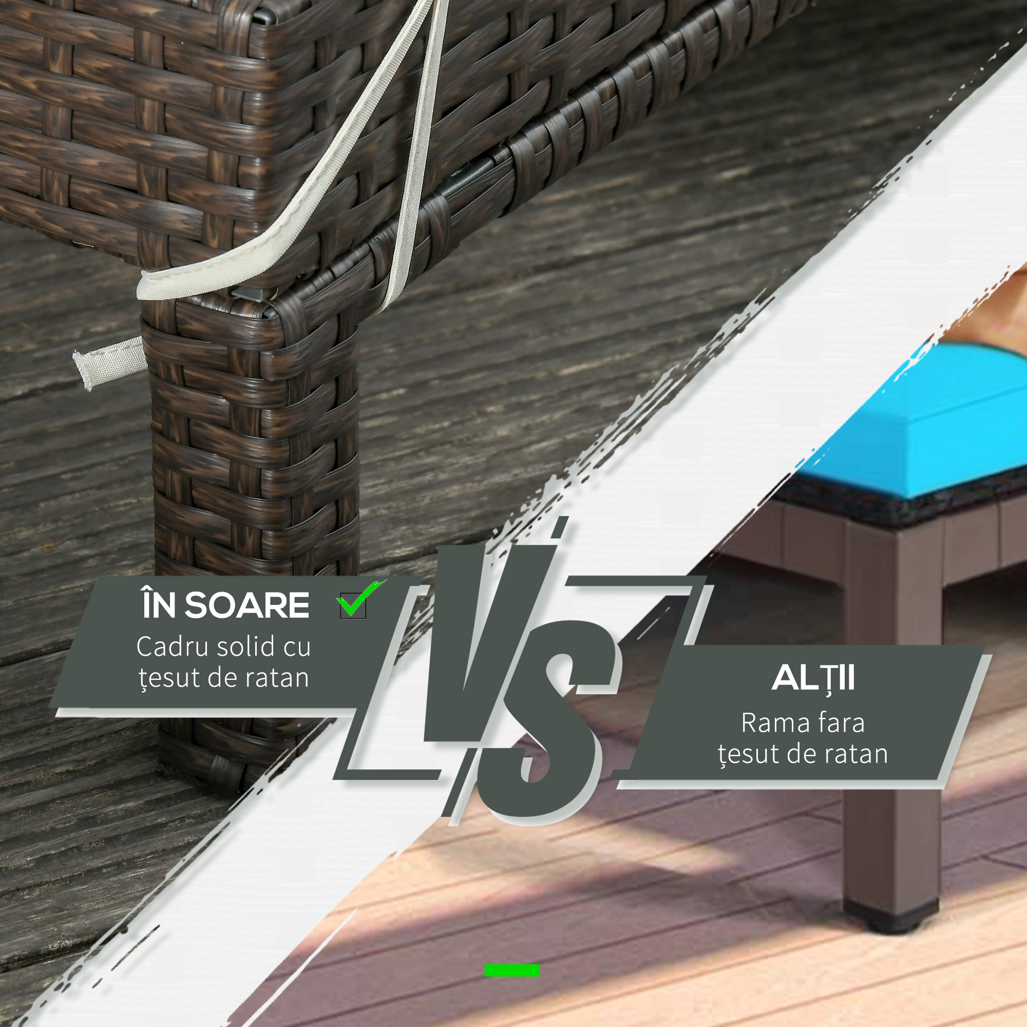 - MATERIALE REZISTENTE: Cadrul sezlongului este construit din otel acoperit cu pulbere si cu rachita sintetica tesuta manual. Un material durabil, impermeabil si rezistent la UV.