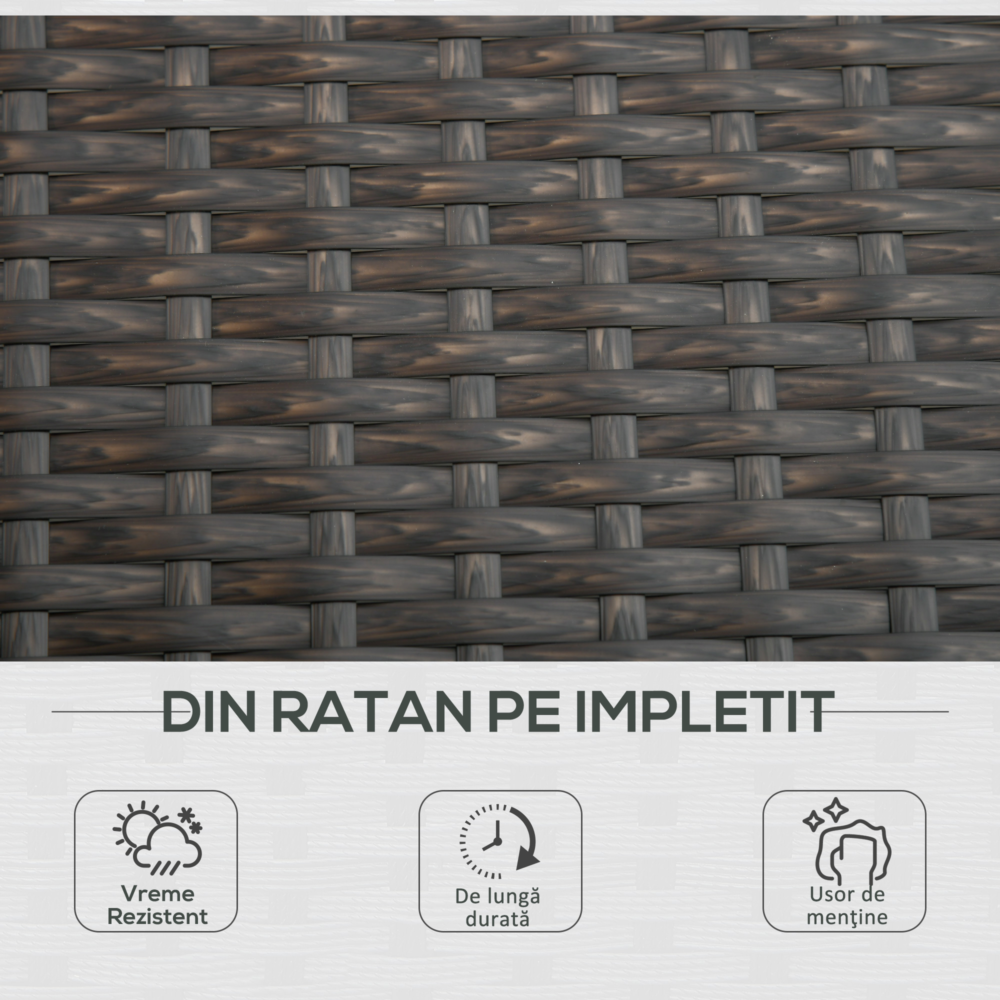 - Cadru robust din otel si tapiterie din ratan sintetic