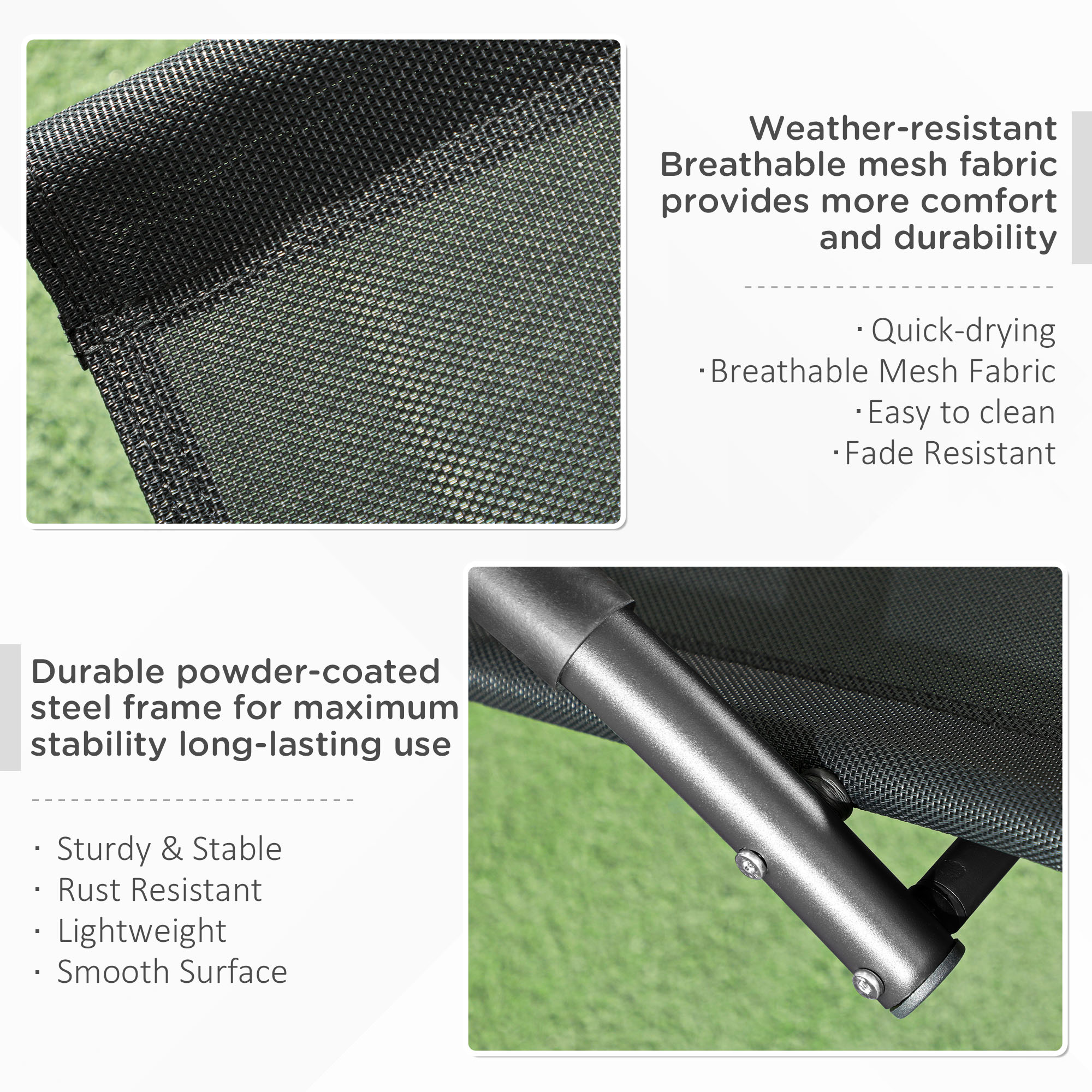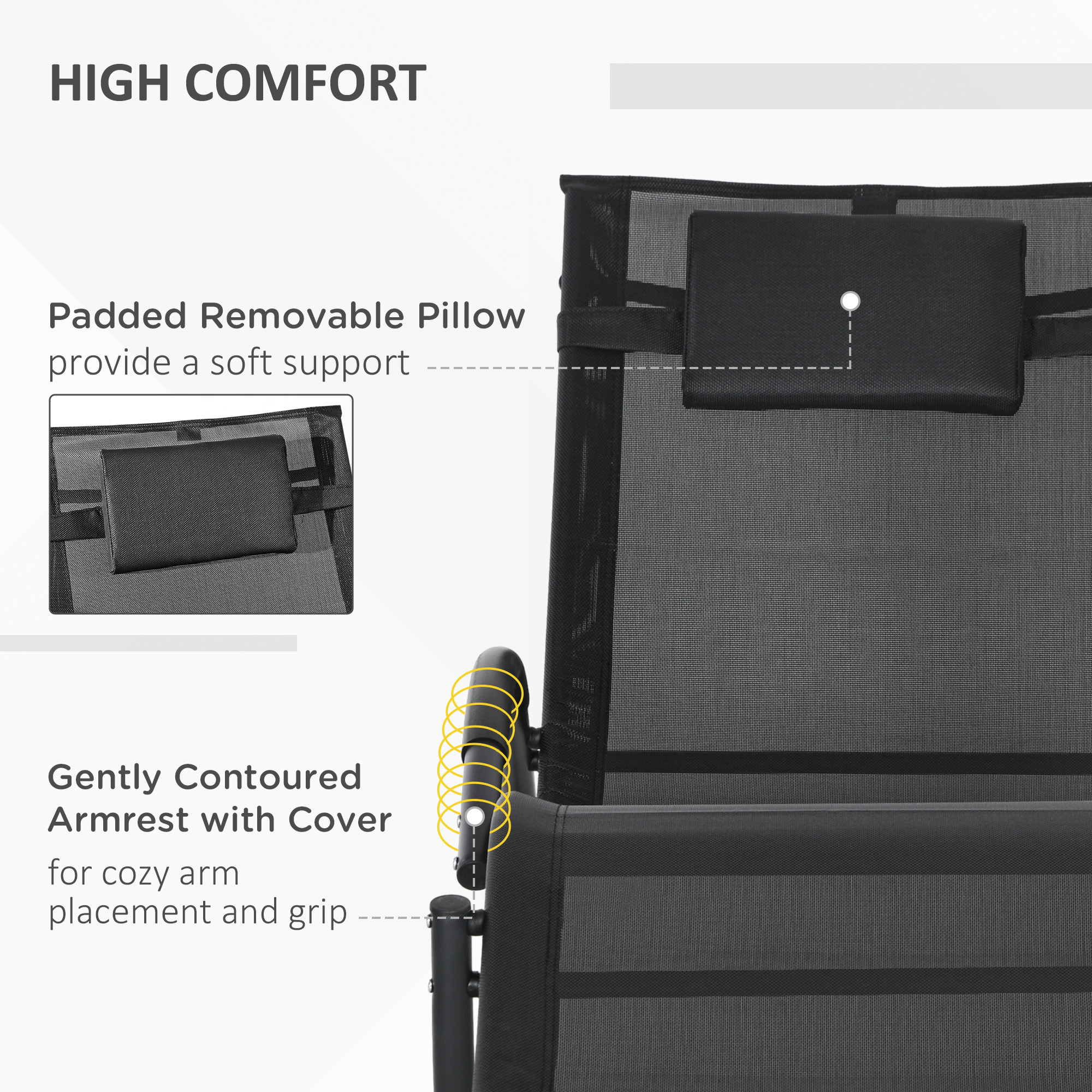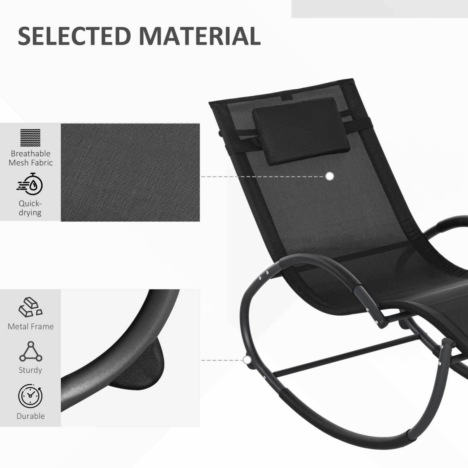 Bucurati-va de relaxare in aer liber, langa piscina sau langa mare, cu balansoarul [BRAND NAME]. Usor si robust, sezlongul de gradina este fabricat din metal acoperit cu pulbere si texteline. Designul sau ergonomic asigura un confort maxim: cotierele sunt curbate, pentru a se adapta corpului si sunt captusite cu cauciuc pentru a va oferi un suport moale. Nu pierdeti timpul, asezati-va si lasati-va leganati de acest minunat sezlong!