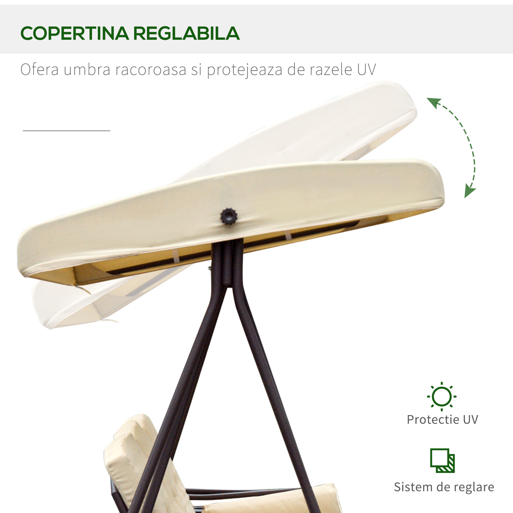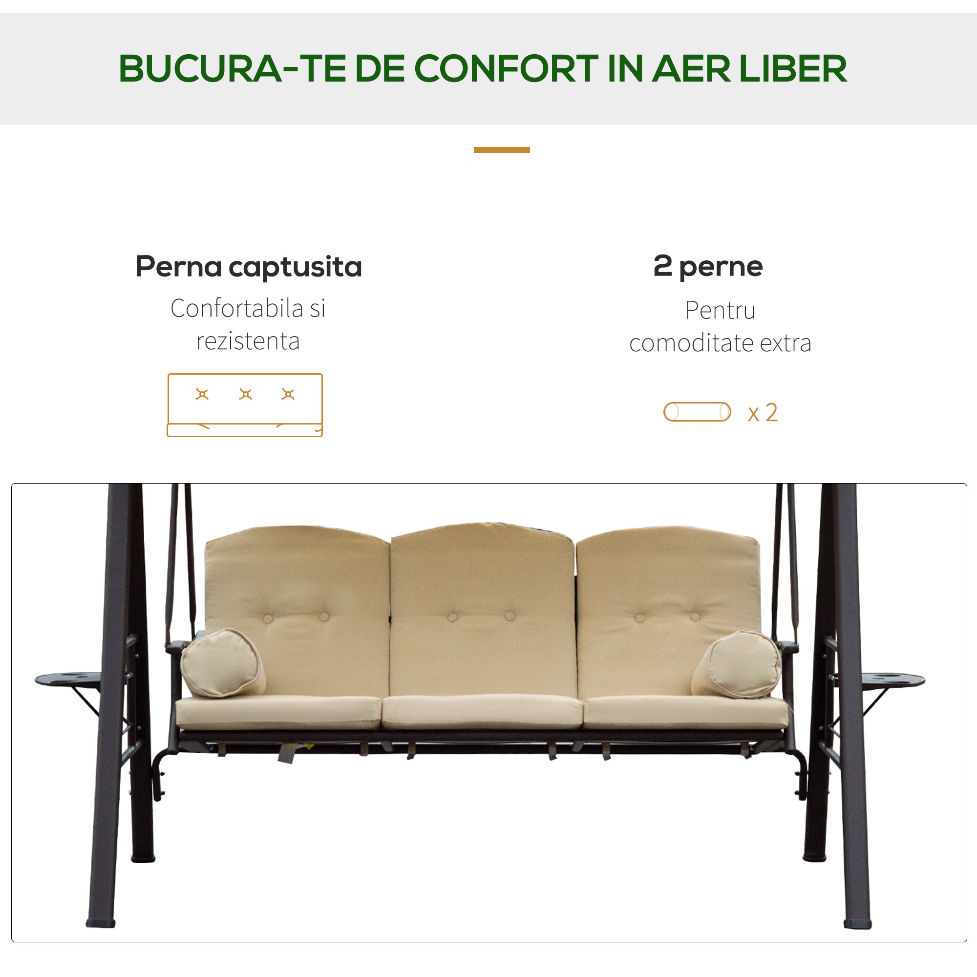 Transforma-ti terasa intr-un spatiu de relaxare premium cu acest sezlong [BRAND NAME] pentru 3 persoane. Pernele capitonate asigura confort, iar acoperisul basculant ofera protectie solara ajustabila. Perfect pentru momentele de odihna in doi sau trei, acest mobilier combina stilul modern cu functionalitatea practica pentru orice mediu exterior.