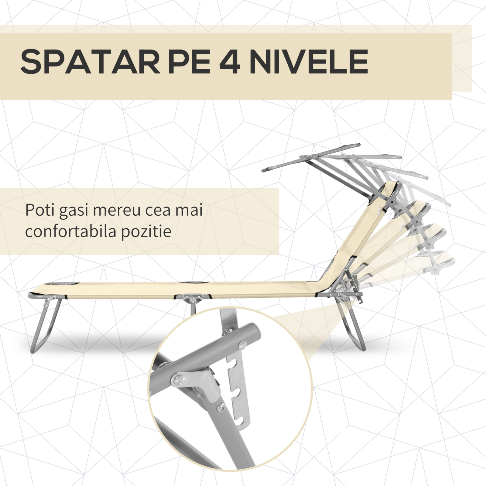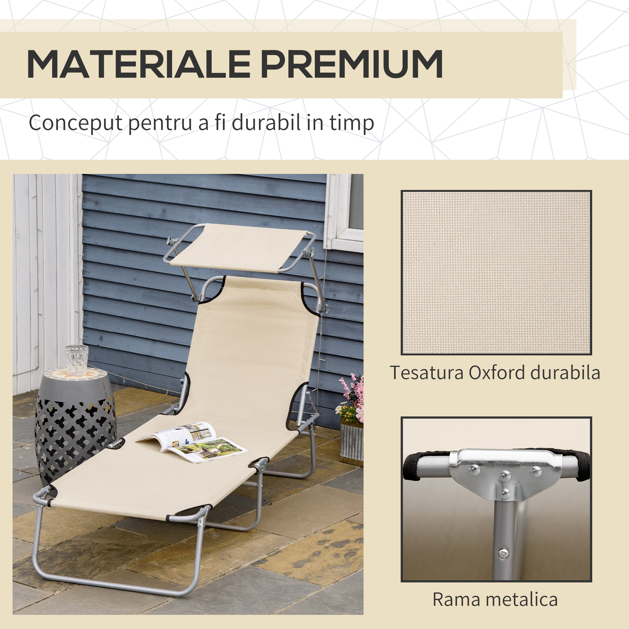 Acest sezlong pentru plaja este accesoriul must-have al verii! Indispensabil pentru relaxare si plaja in gradina sau la piscina, sezlongul de plaja este dotat cu un baldachin reglabil confortabil pentru a va proteja de soare in orice moment al zilei. Cadrul metalic rezistent la rugina si sezuta din material Oxford sunt rezistente si de lunga durata. Pliabil si usor, puteti lua sezlongul de gradina cu dvs. in fiecare vacanta.