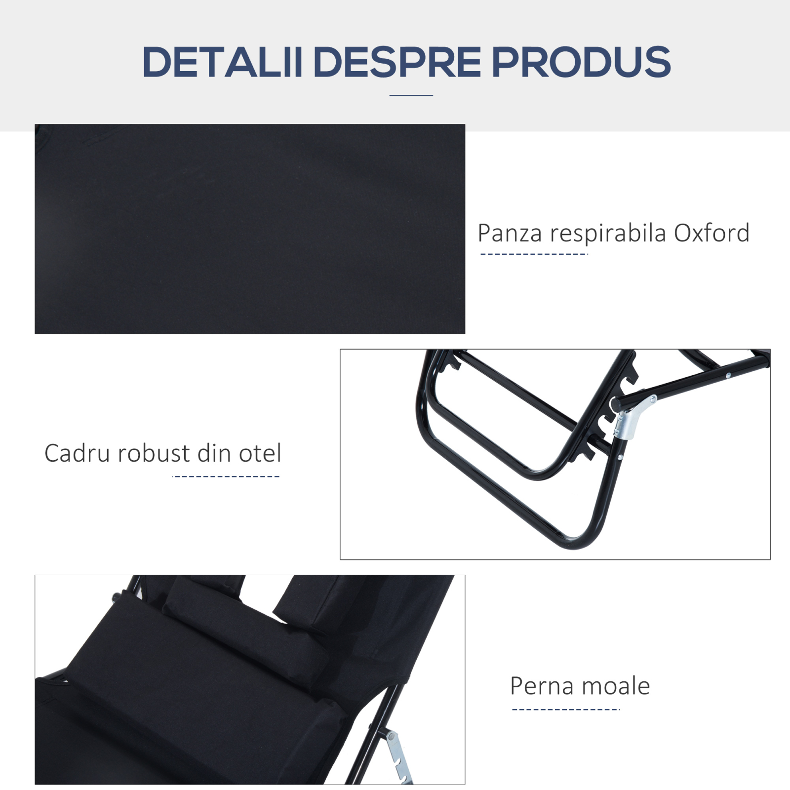 Sezlongul pliabil [BRAND NAME] a va tine companie in fiecare moment de relaxare in aer liber. Cu cadrul solid din otel de inalta calitate si husa din material Oxford, sezlongul este perfect pentru a fi utilizat in gradina, la mare sau la marginea piscinei. Orificiul practic pentru fata va permite sa va relaxati la maximum chiar si atunci cand stati pe burta. in plus, designul sezlongului pliabil va permite sa il transportati cu usurinta oriunde doriti.