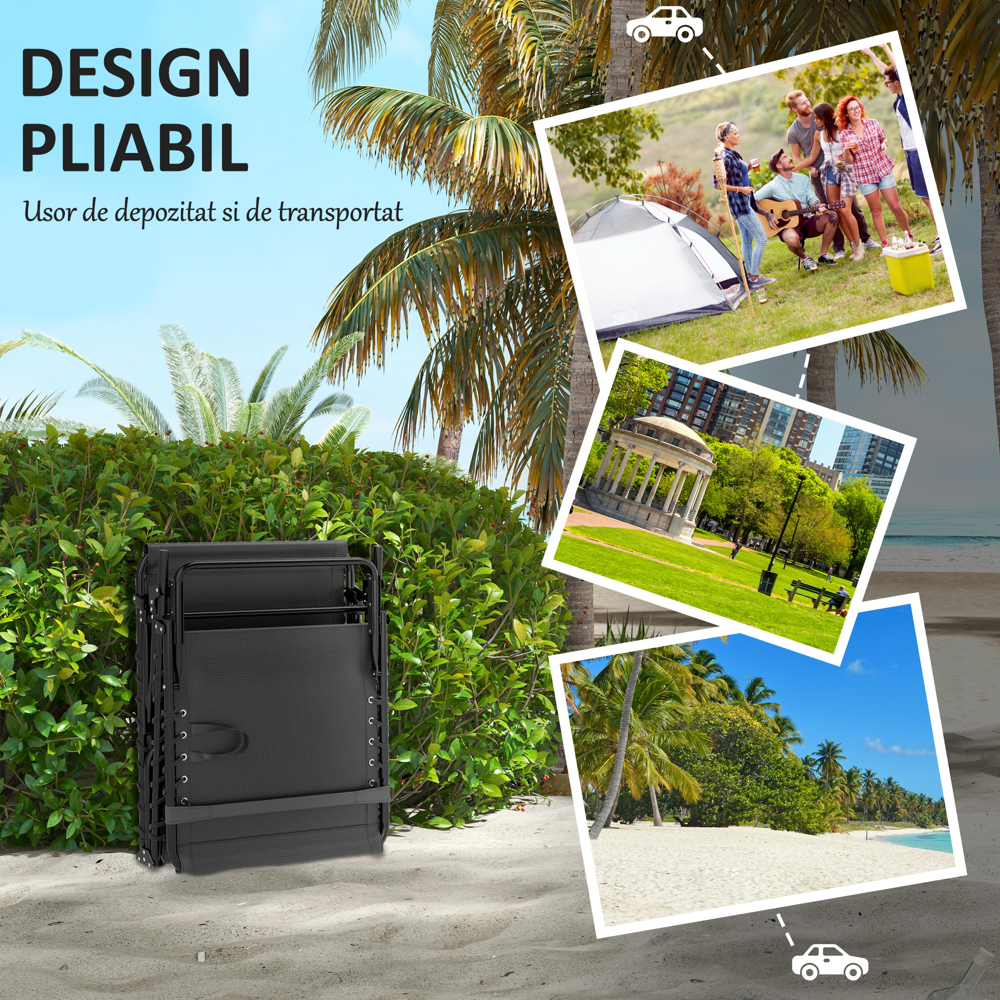 Acest sezlong de gradina [BRAND NAME] transforma timpul petrecut in aer liber intr-o experienta de relaxare pura. Cu un cadru robust din metal si o plasa respirabila pentru sezut si spatar, impreuna cu perne moi pentru sezut si tetiera, acest sezlong ofera un confort incredibil. Structura pliabila a sezlongului permite o pliere practica, pentru a-l putea lua mereu cu tine. Suporta pana la 120 kg, iar spatarul este reglabil in 5 pozitii, pentru a gasi intotdeauna pozitia ideala.