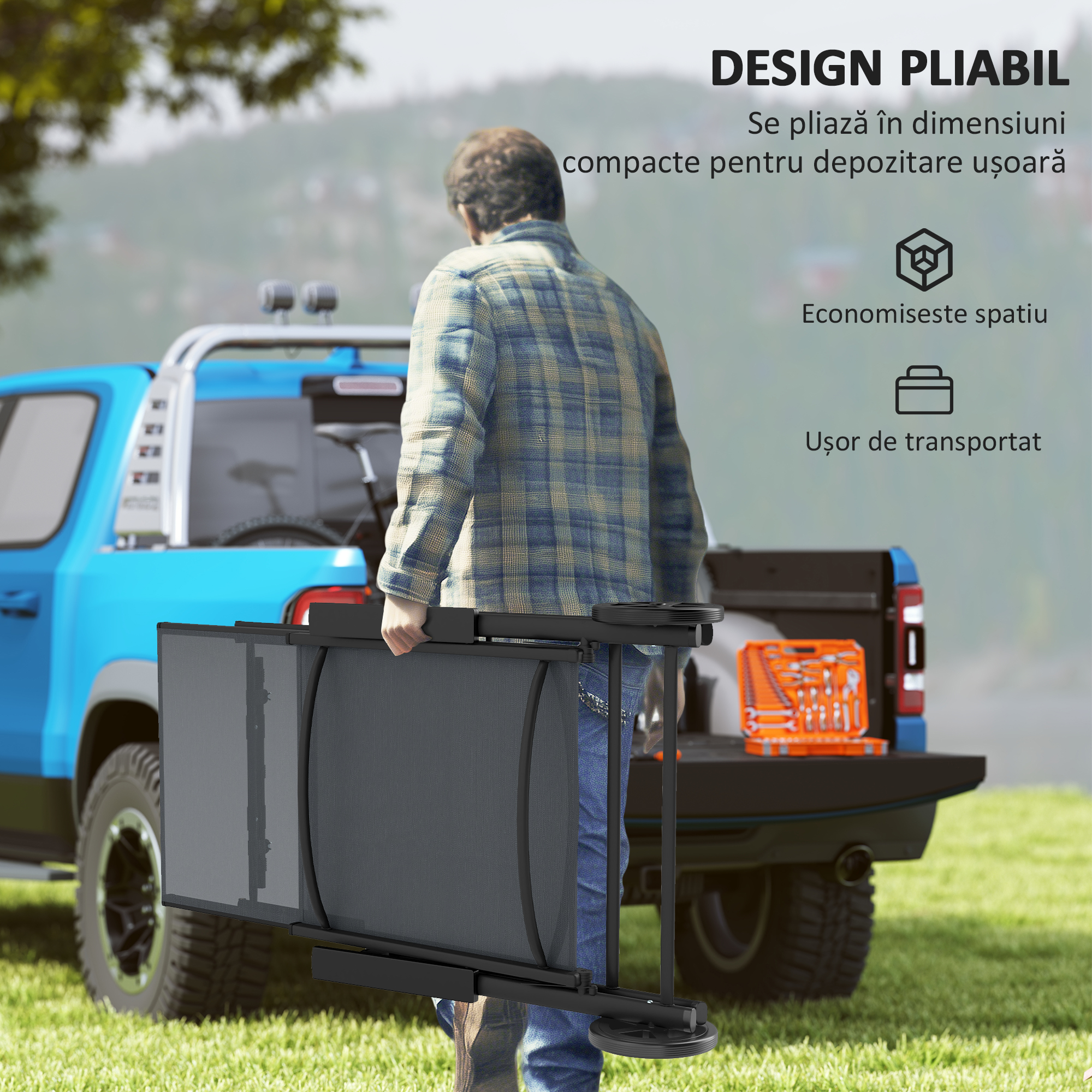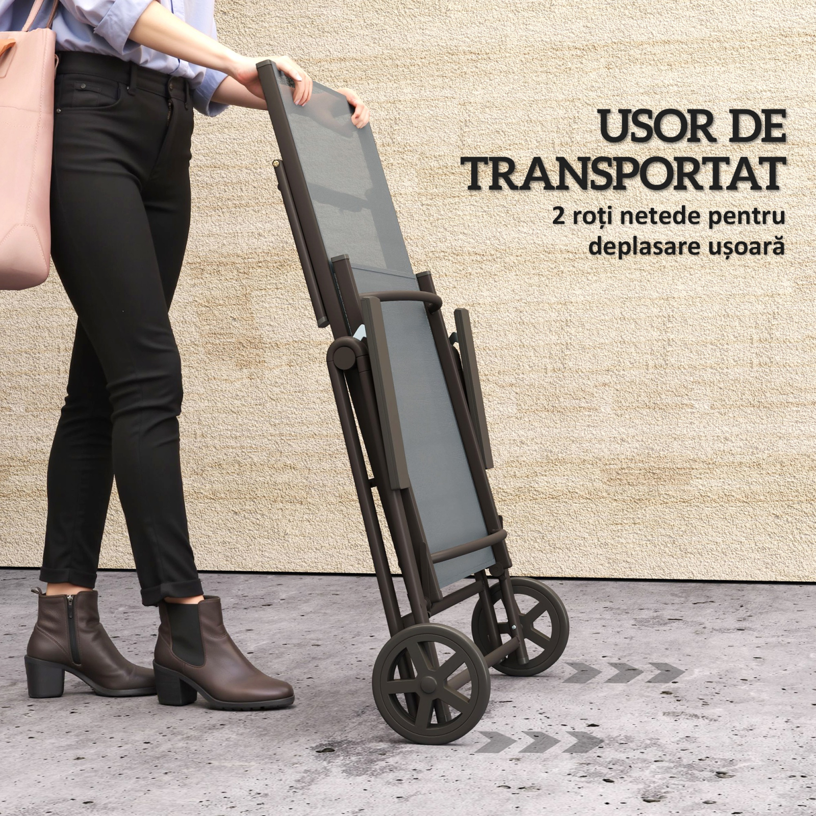 Bucura-te de soare cu stil in compania sezlongului nostru [BRAND NAME] cu rotile! Acest sezlong reclinabil de gradina este dotat cu un spatar reglabil in 5 pozitii pana la 135° si este usor de mutat si depozitat de fiecare data cand nu mai ai nevoie de el. Acoperit cu un material textilen impermeabil, structura poate fi utilizata in orice mediu exterior si iti asigura doza potrivita de prospetime si confort in timp ce te relaxezi in aer liber.