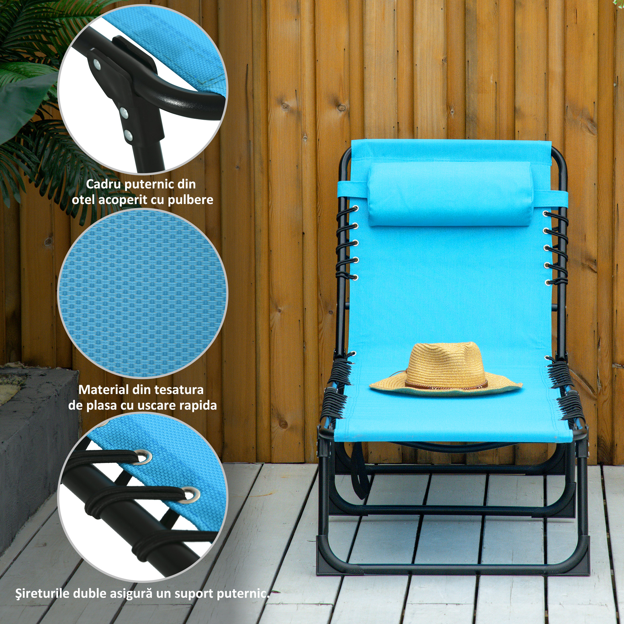 sezlong Pliabil cu Spatar Reglabil, Cadru din Otel si Material Textil Tip Plasa, 189x58x30 cm, Albastru