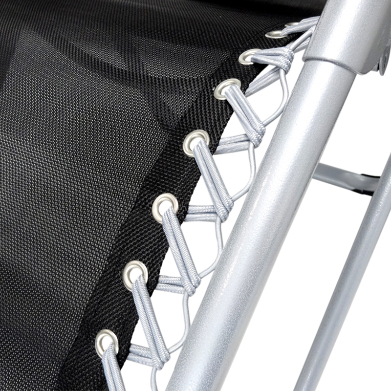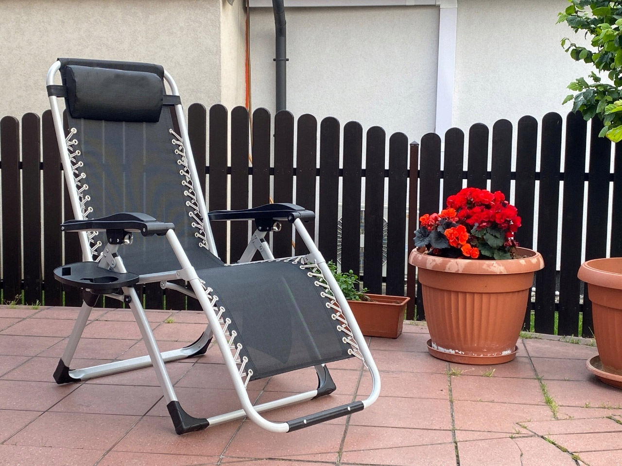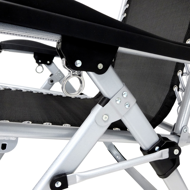 Sezlong pliabil gravitate zero, conceput pentru relaxare maxima in gradina, pe terasa sau balcon. Pozitia cu picioarele ridicate la nivelul inimii reduce presiunea asupra coloanei si ajuta la relaxarea musculaturii. Materialul Textoline este flexibil si rezistent la intemperii, iar cadrul metalic tratat anticoroziv asigura durabilitate in timp.