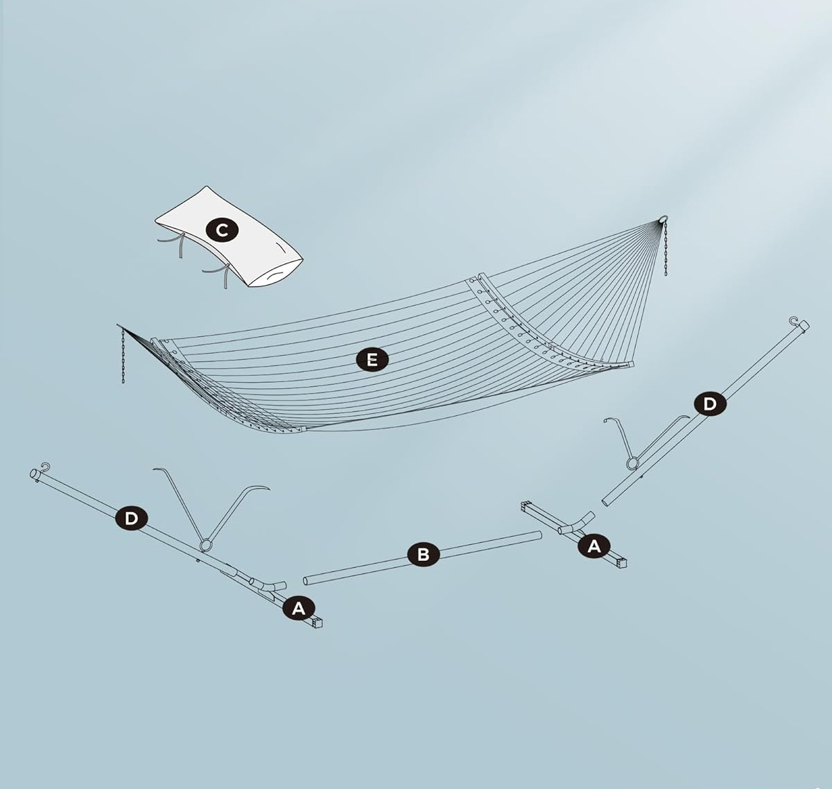 Dimensiuni cadru: 400 x 100 x 90 cm (L x l x H). Dimensiuni hamac: 200 x 140 cm (L x l)