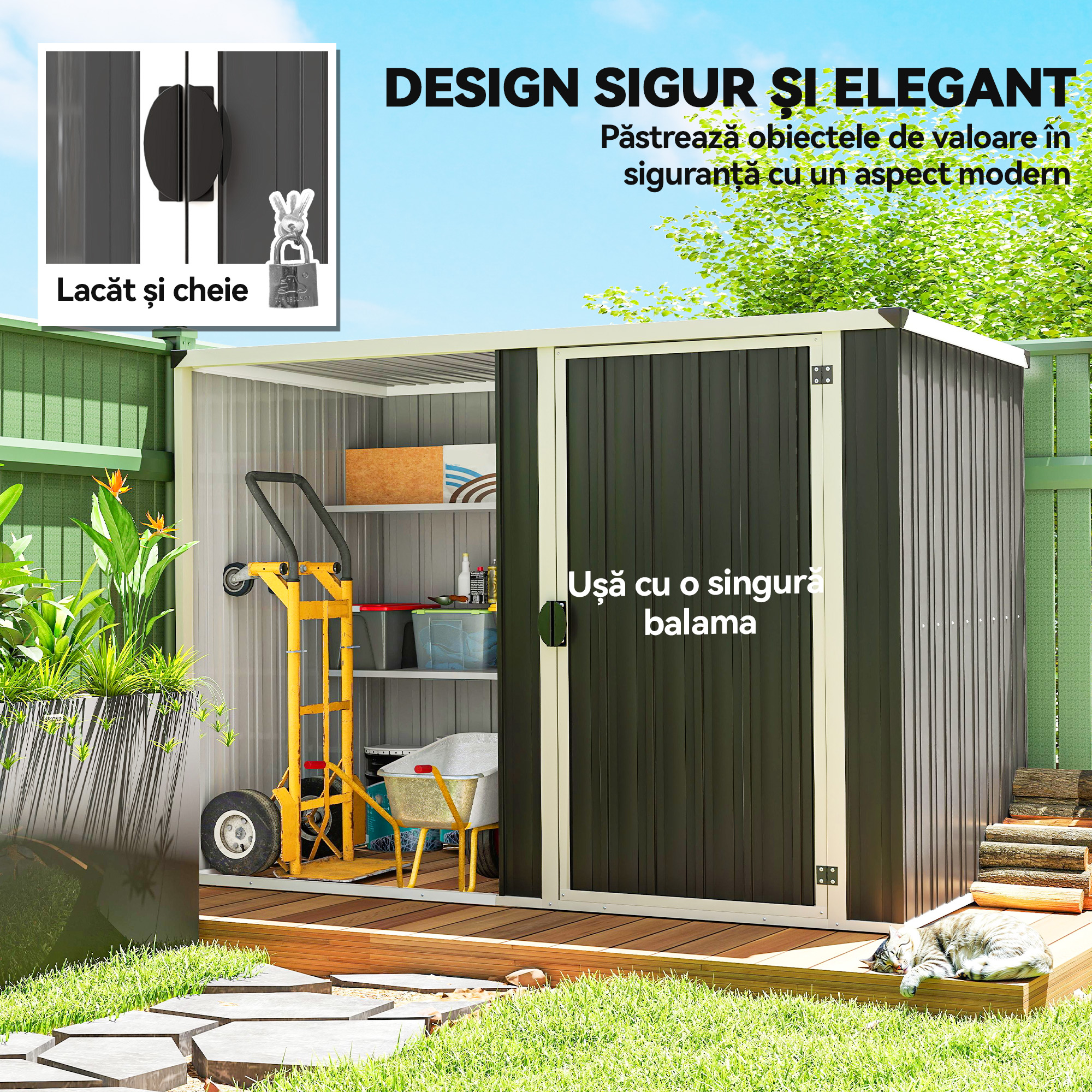 Dezordinea din gradina creeaza un spatiu haotic si face uneltele vulnerabile la rugina si furt. sopronul de gradina [BRAND NAME] ofera o solutie printr-un interior divizat, o structura rezistenta din otel galvanizat si o incuietoare sigura. in sfarsit, te poti bucura de liniste, stiind ca obiectele tale sunt organizate si protejate in acest sopron de unelte, proiectat pentru a imbunatati viata ta in aer liber.