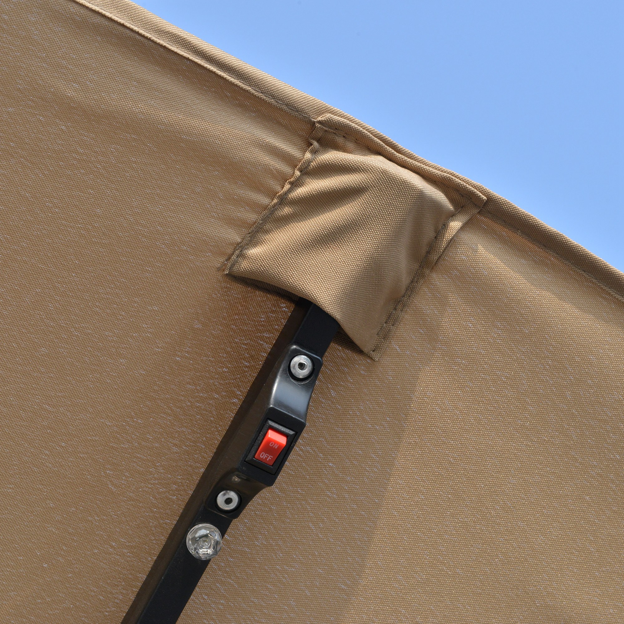 • 48 LUMINI LED: Aceasta umbrela de terasa dispune de lumini cu sipci LED alimentate de un panou solar puternic, astfel incat sa nu aveti nevoie de electricitate. O solutie perfecta pentru a oferi mai multa lumina serilor dvs!