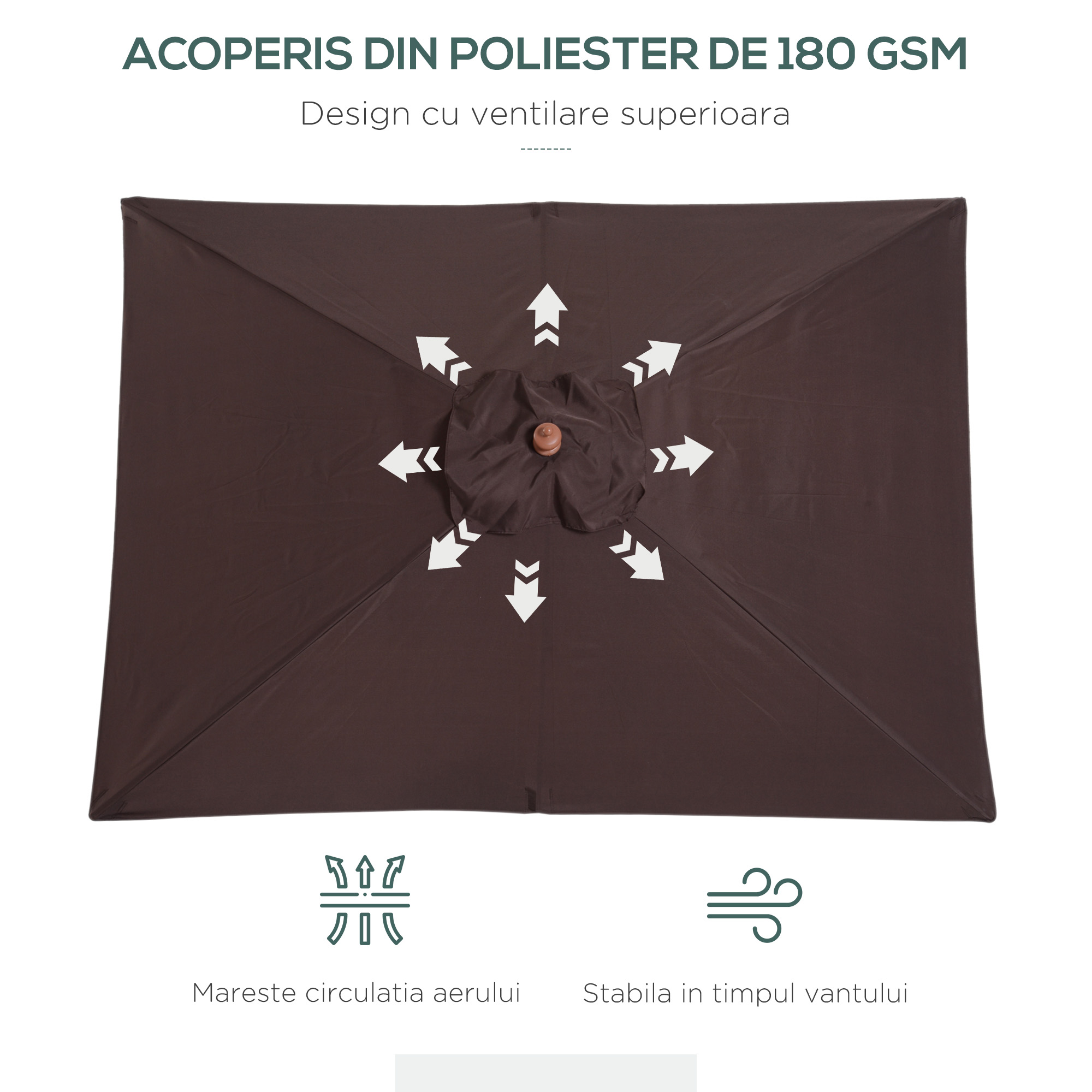 Umbrela dreptunghiulara inclinabila 2x1,5 m cu 6 spite si deschidere cu sfoara, din bambus si poliester, culoare cafea