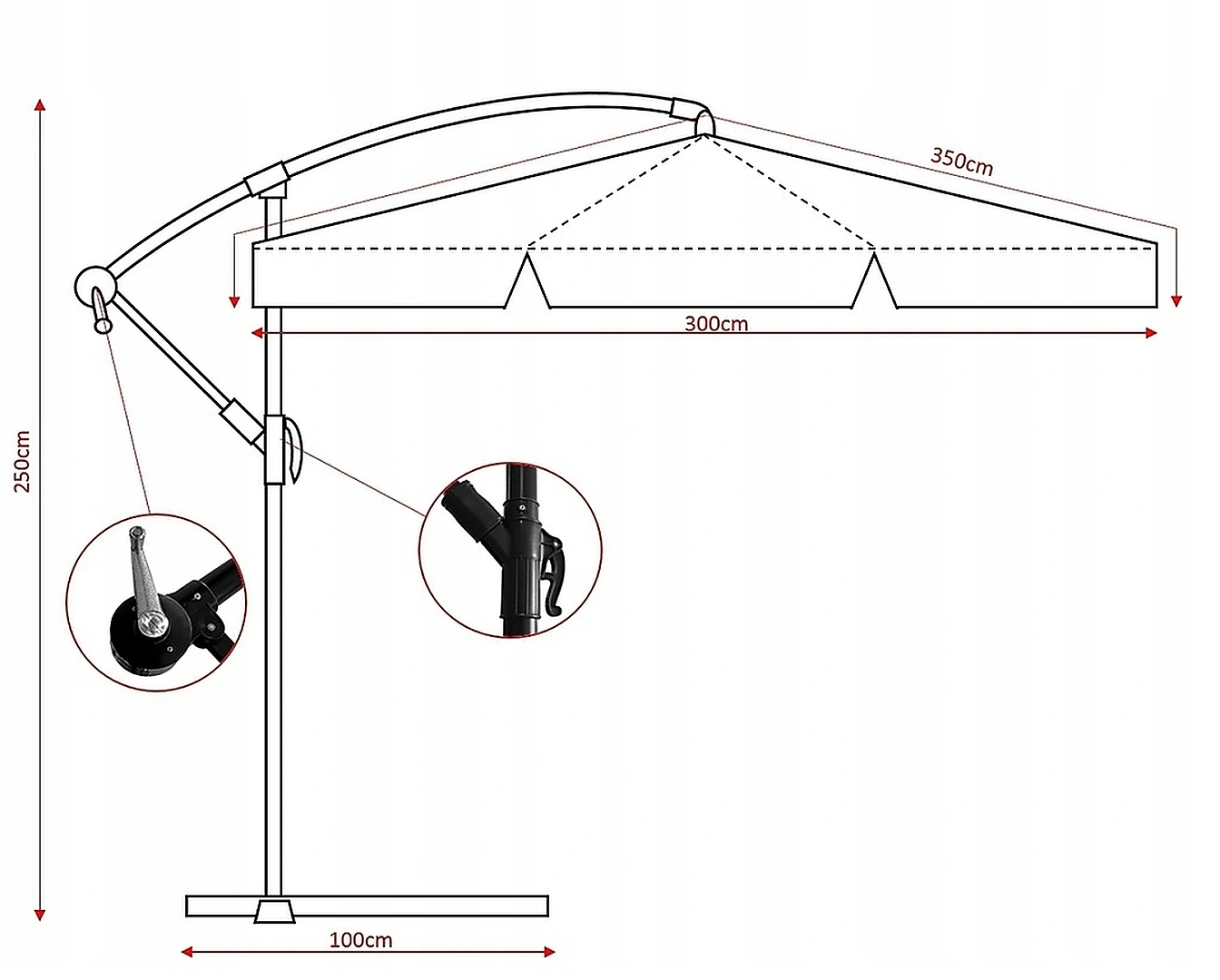 Umbrela de gradina tip banana este ideala pentru protectie impotriva soarelui si ploii, oferind confort in orice spatiu exterior. Designul practic cu brat lateral si reglare a inclinarii permite adaptarea usoara la pozitia soarelui.