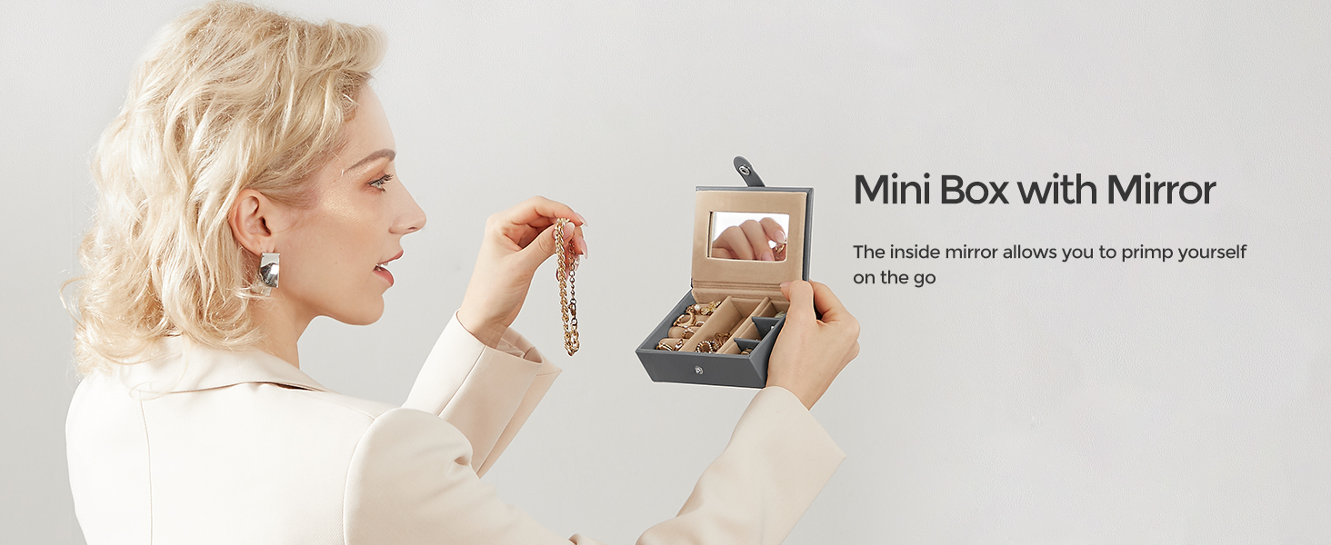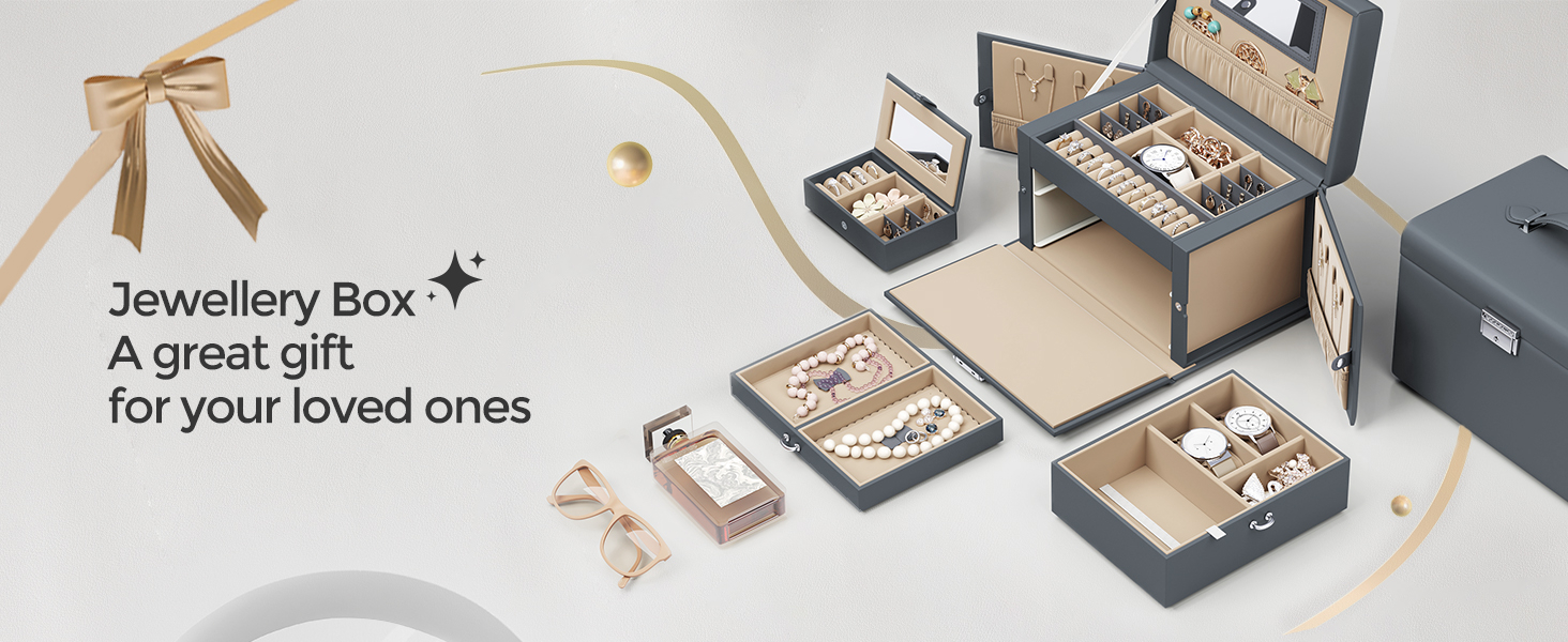 Culoare: Gri Marca: Songmics Material: piele din piele + cadru din fibra de densitate medie + catifea Stil: Modern Caracteristica speciala: oglinda, lacat, portabil Dimensiunile produsului: 18D x 26W x 17H centimetri Forma: Dreptunghiular Despre acest articol Compartimente separate, buzunare de catifea, deschideri pentru cercei cu stifturi, fante pentru inele, perne pentru ceasuri, carlige laterale pentru agatarea colierelor fara incurcaturi — aceasta cutie de bijuterii cu 3 niveluri ofera spatiu de depozitare pentru diversele tale bijuterii. Mini husa de calatorie separata: Acest organizator de bijuterii vine cu o mini cutie de bijuterii de calatorie, care este perfecta pentru a aduce cateva piese in calatorie. Carcasa mini are si o oglinda. Lacat si maner practice: Aceasta cutie de bijuterii se incuie cu 2 chei pentru a va pastra obiectele de valoare in siguranta si la indemana; manerul de pe capac va permite sa transportati cu usurinta cutia de bijuterii oriunde doriti. Calitate: Suprafete netede din PU, corp solid din MDF, captuseala moale din catifea, cusaturi ingrijite - aceasta cutie de bijuterii care se poate incuia este solida si durabila pentru a va insoti pentru anii urmatori. Idee de cadou de lux: Daruiti acest organizator de bijuterii elegant si bine realizat celor dragi de ziua lor de nastere sau aniversare pentru a le surprinde! Sau, rasfatati-va cu aceasta fermecatoare cutie de bijuterii - o meriti!