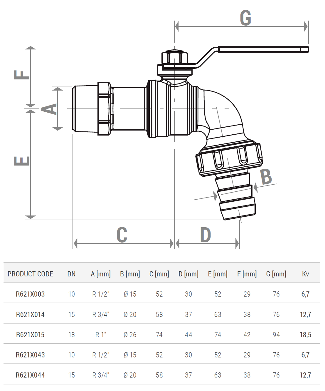 Tija robinetului este prevazuta cu dublu O-ring pentru etansare sigura si durabila, iar piulita are tratament anticoroziv, sigiliu si holograma de garantie. R621X003 are trecere standard (standard port) si poate fi echipat optional cu racord rapid R625X003 (piulita + conector furtun).