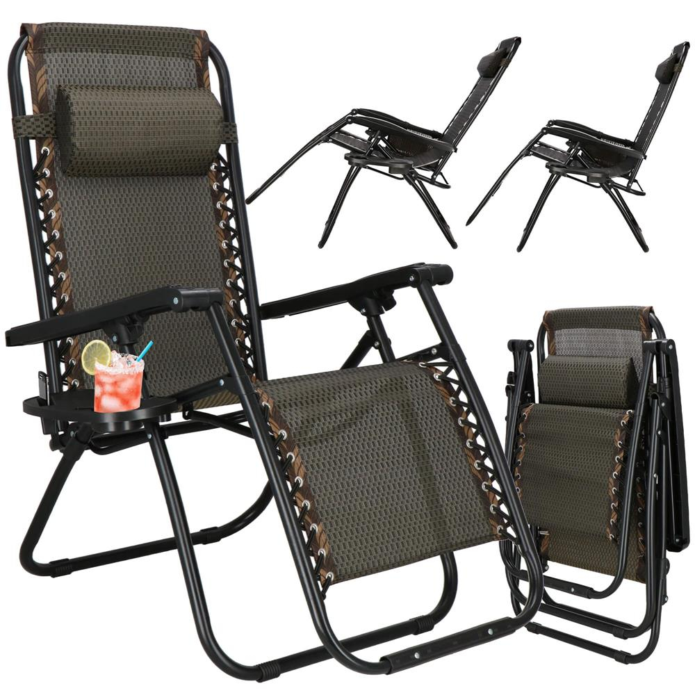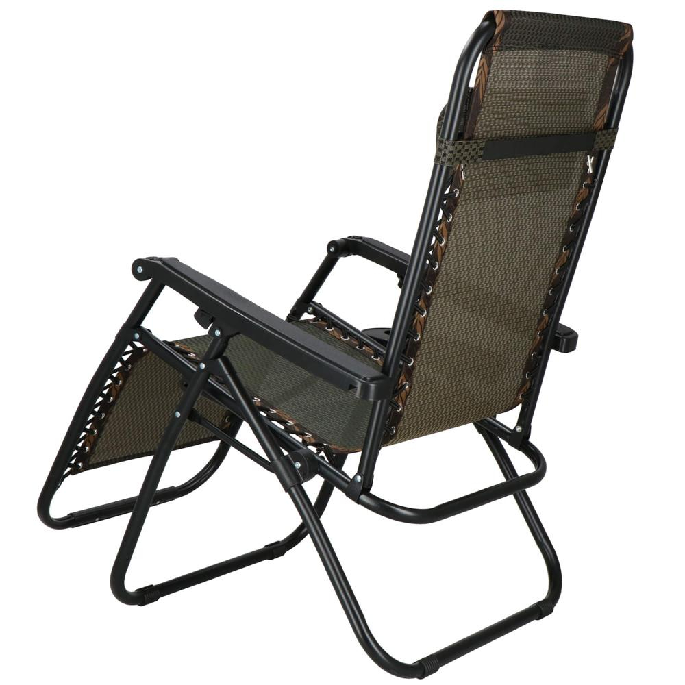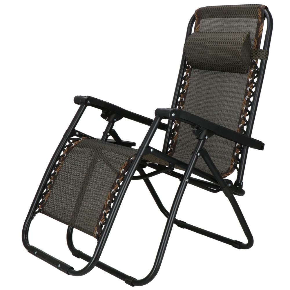 Brius Sezlong pliabil cu masuta laterala si tetiera, spatar reglabil, textilene impermeabil, max 120 kg, 175x67 cm, maro