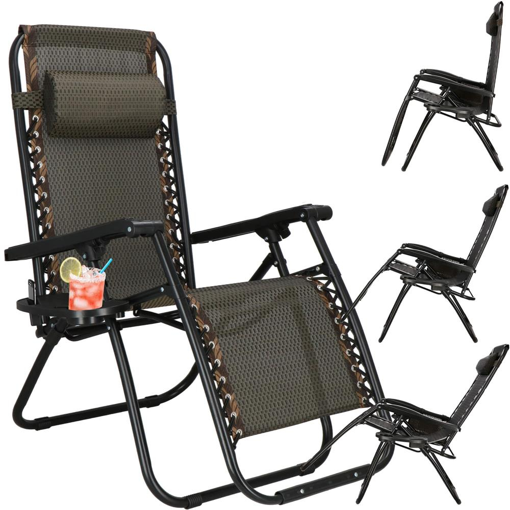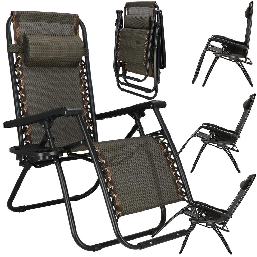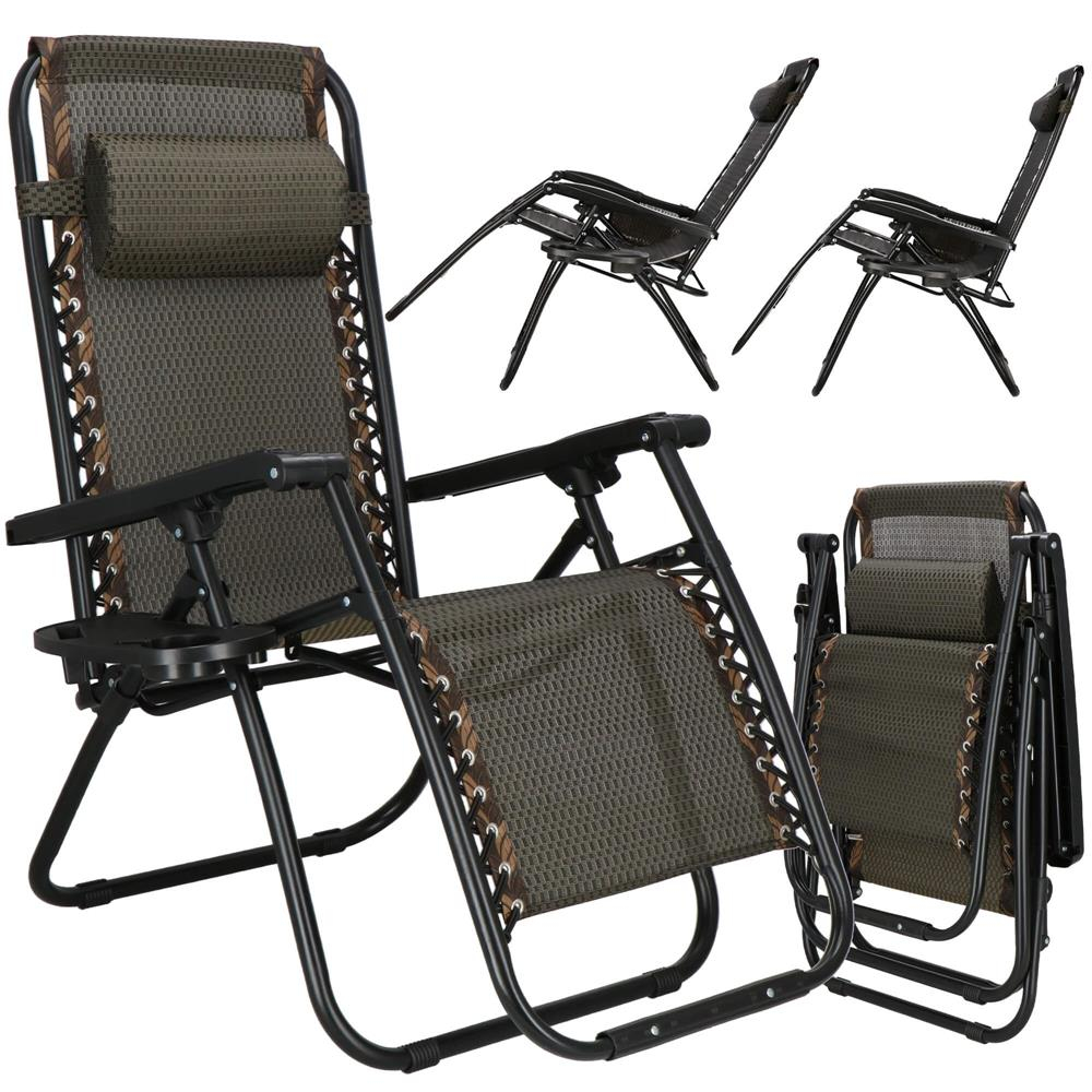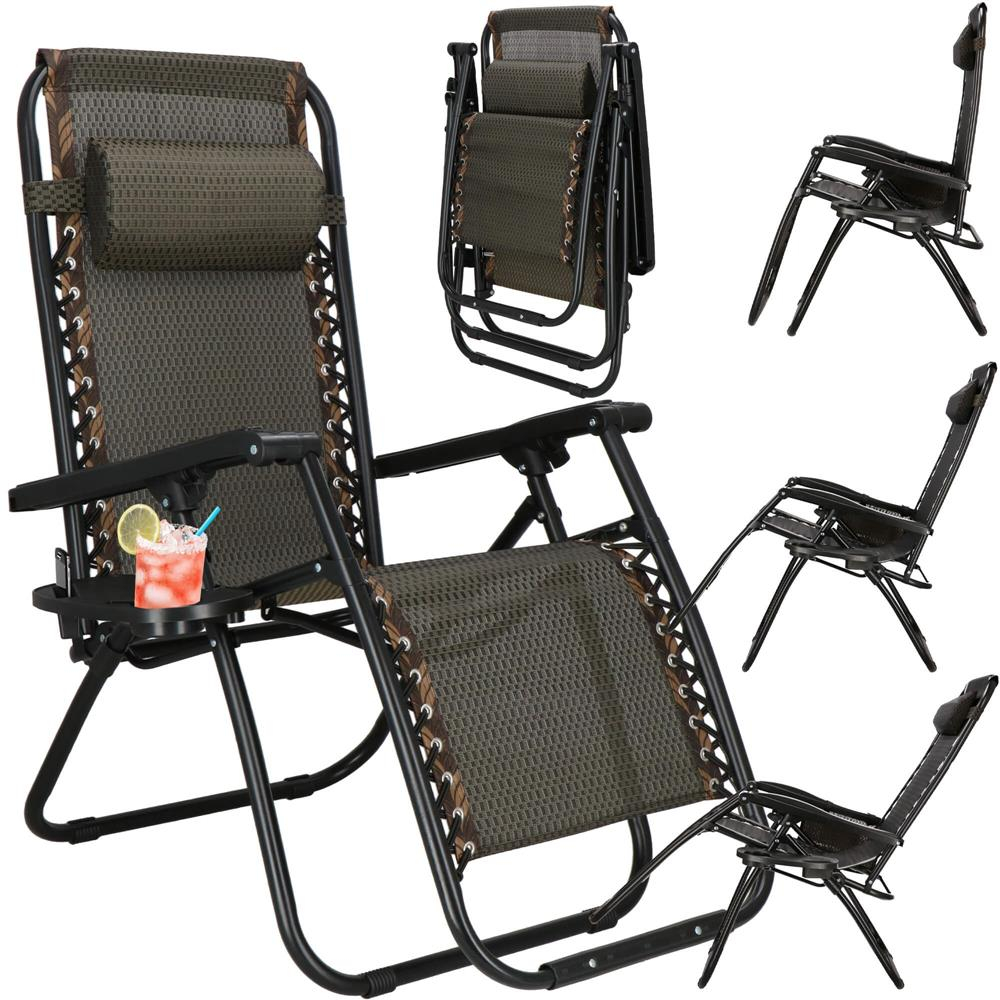 Brius Sezlong pliabil cu masuta laterala si tetiera, spatar reglabil, textilene impermeabil, max 120 kg, 175x67 cm, maro