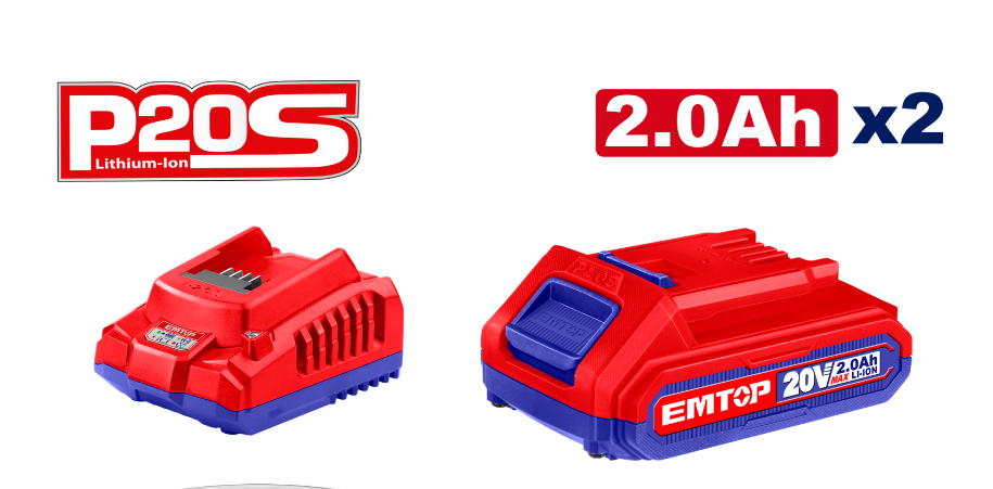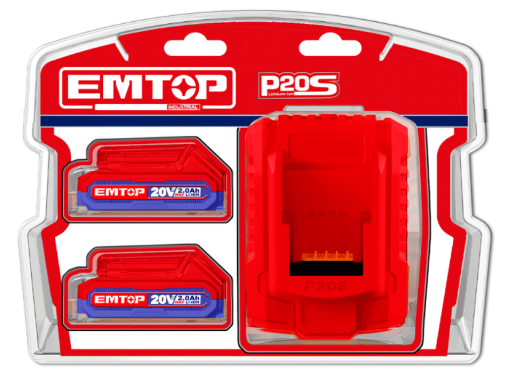 EMTOP 2 x Acumulatori 2.0Ah litiu-ion si incarcator, P20S - ELBCPK1222, EMTOP