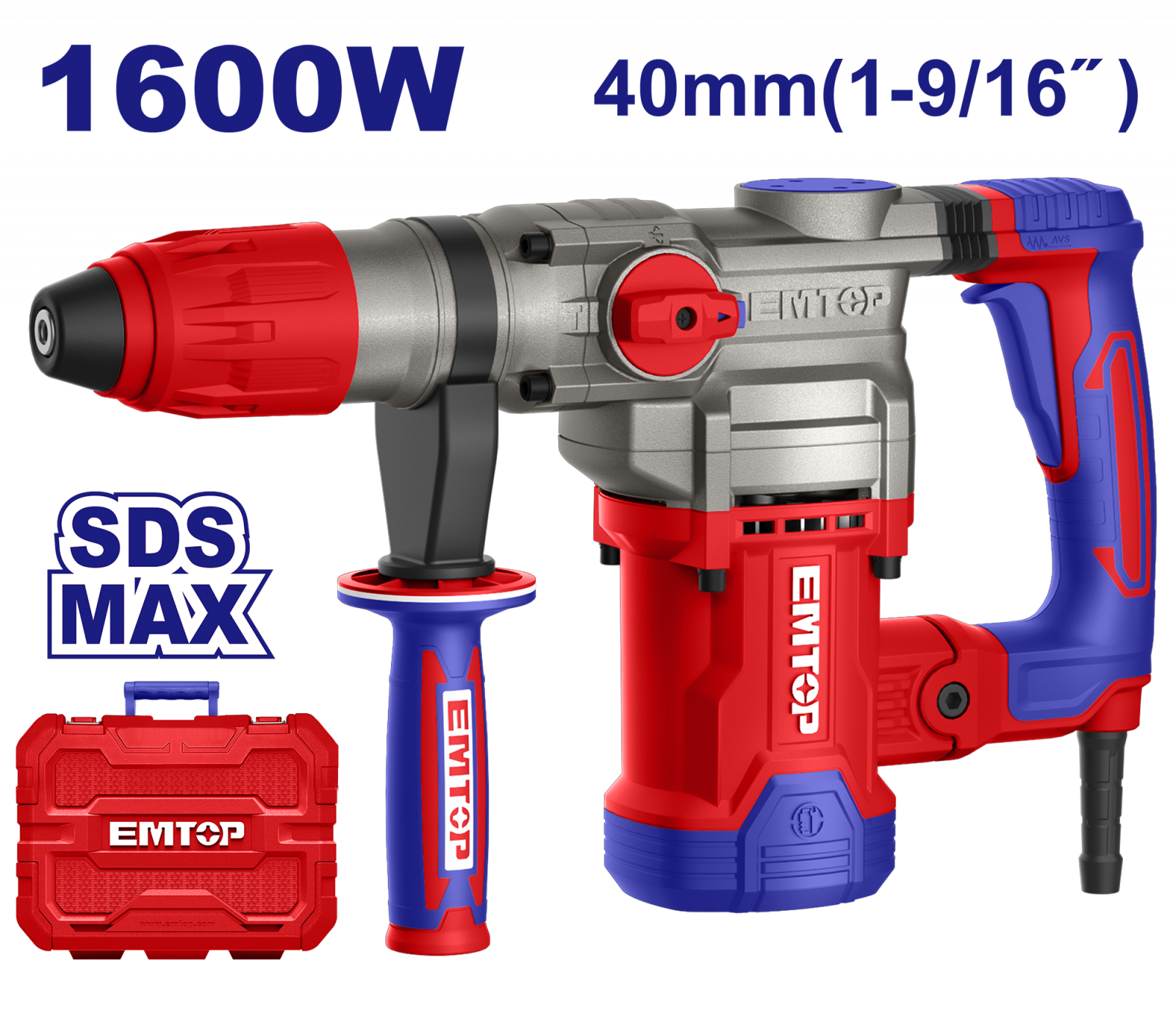 EMTOP Ciocan electric rotopercutor 1600W, 10.0J, cutie de transport - ERHRM1608, EMTOP
