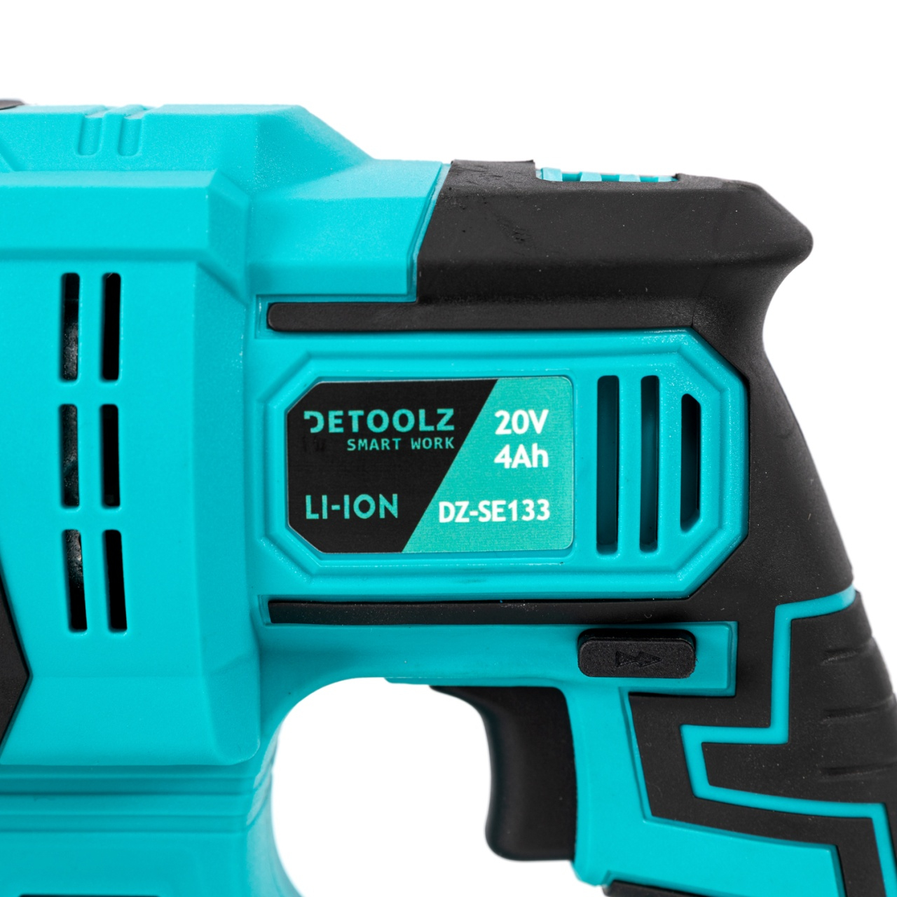 Ciocanul rotopercutor 2.2J cu acumulator 20V/4Ah, Detoolz DZ-SE133 este usor de utilizat pentru operatii de rotopercutie, daltuire, gaurire in beton sau altele similare, pentru gaurirea fara percutie in lemn, metal, plastic, ceramica si operatii de insurubare piulite/suruburi necesare in cazul constructiilor noi, sau in lucrari de renovare.