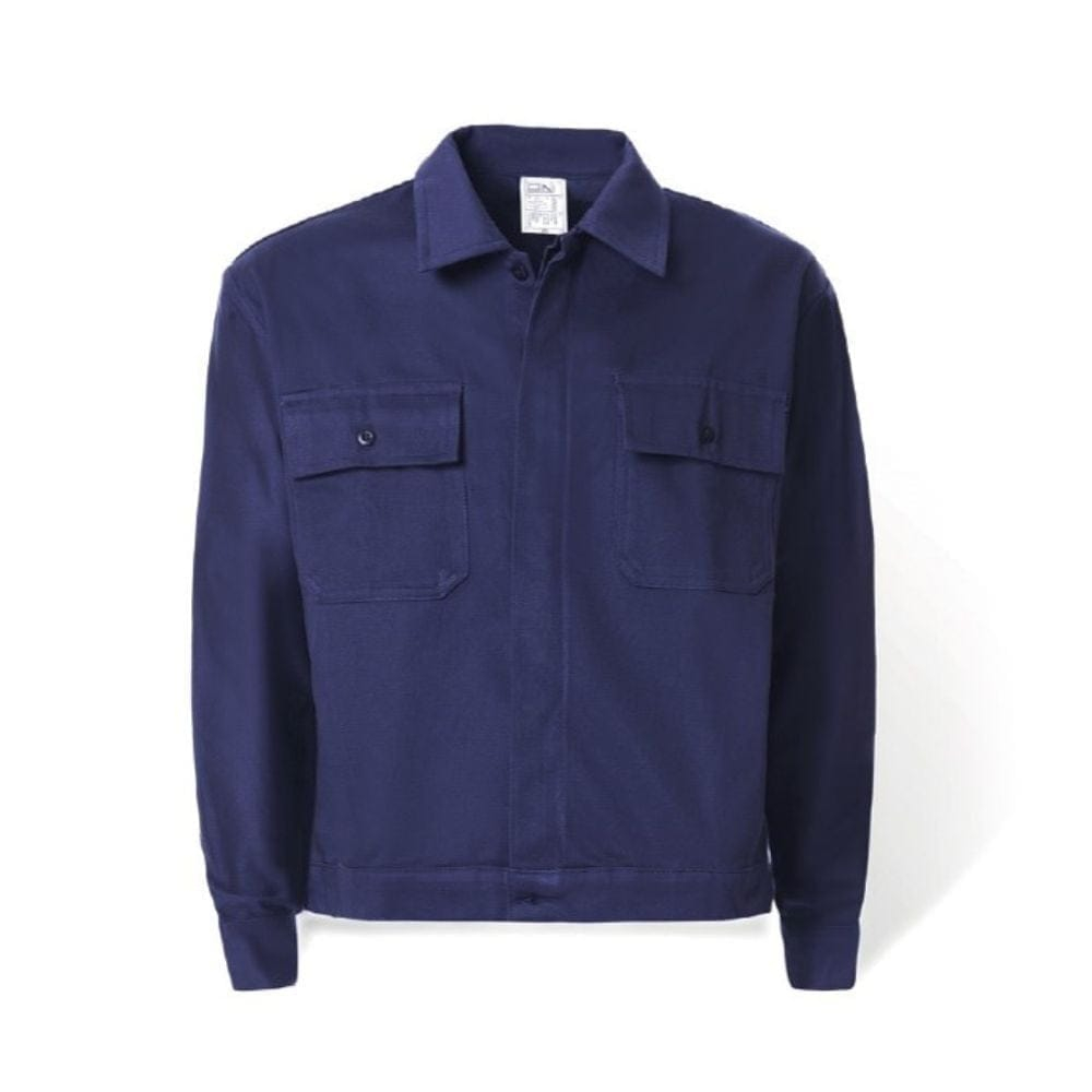 Jacheta de lucru pentru barbati din bumbac sanforizat, cu guler tip camasa si cusaturi contrastante. Inchiderea frontala cu nasturi acoperiti cu fenta si echipata cu doua buzunare la piept inchise cu nasturi si clapeta. Manseta din material inchisa cu nasturi.